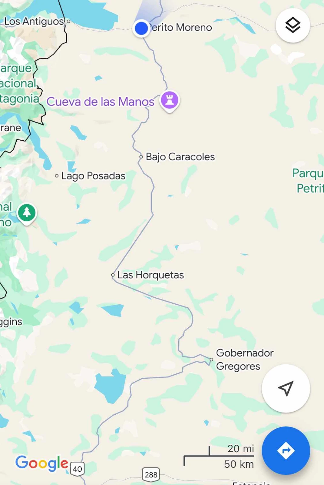 They say Perito Moreno is a center of ranching and fruit and vegetable growing and has a cold high desert climate. I have heard it has a decent laundry and supermarket and a low cost municipal campground.