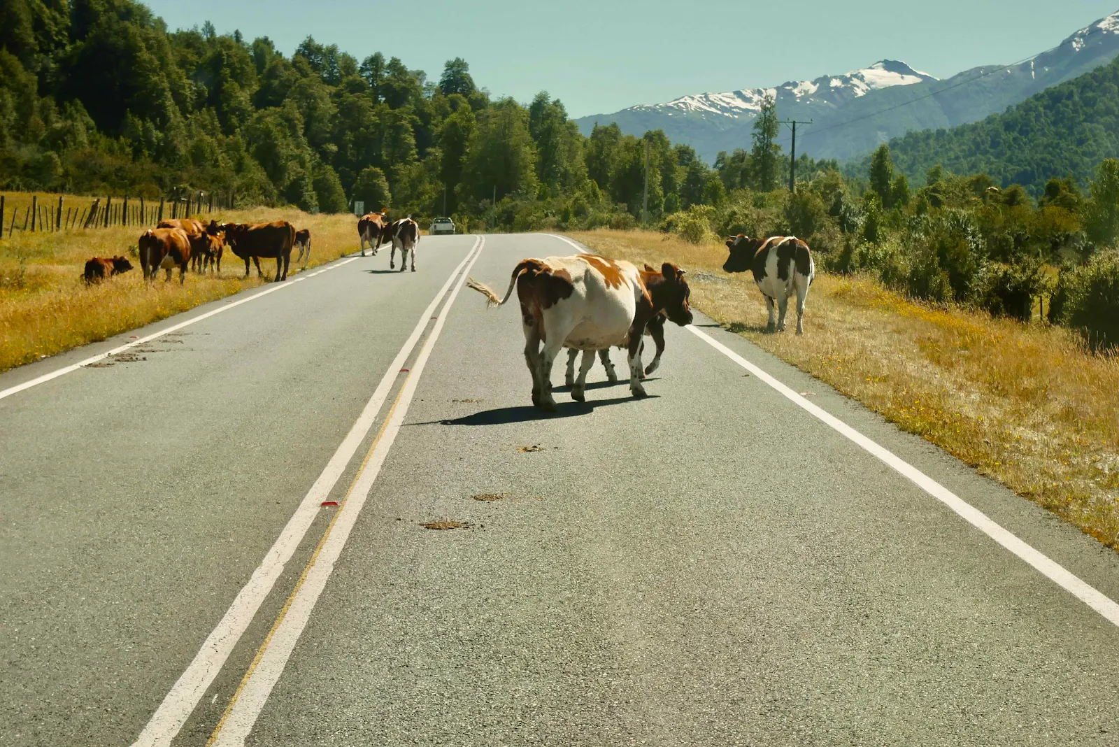 Love the horses in the median and the cattle in the road. Spectacular mountains, as always. (And yes, those little 5 mph speed bumps are nasty. Usually you see them in parking garages, not the middle of the road !)
