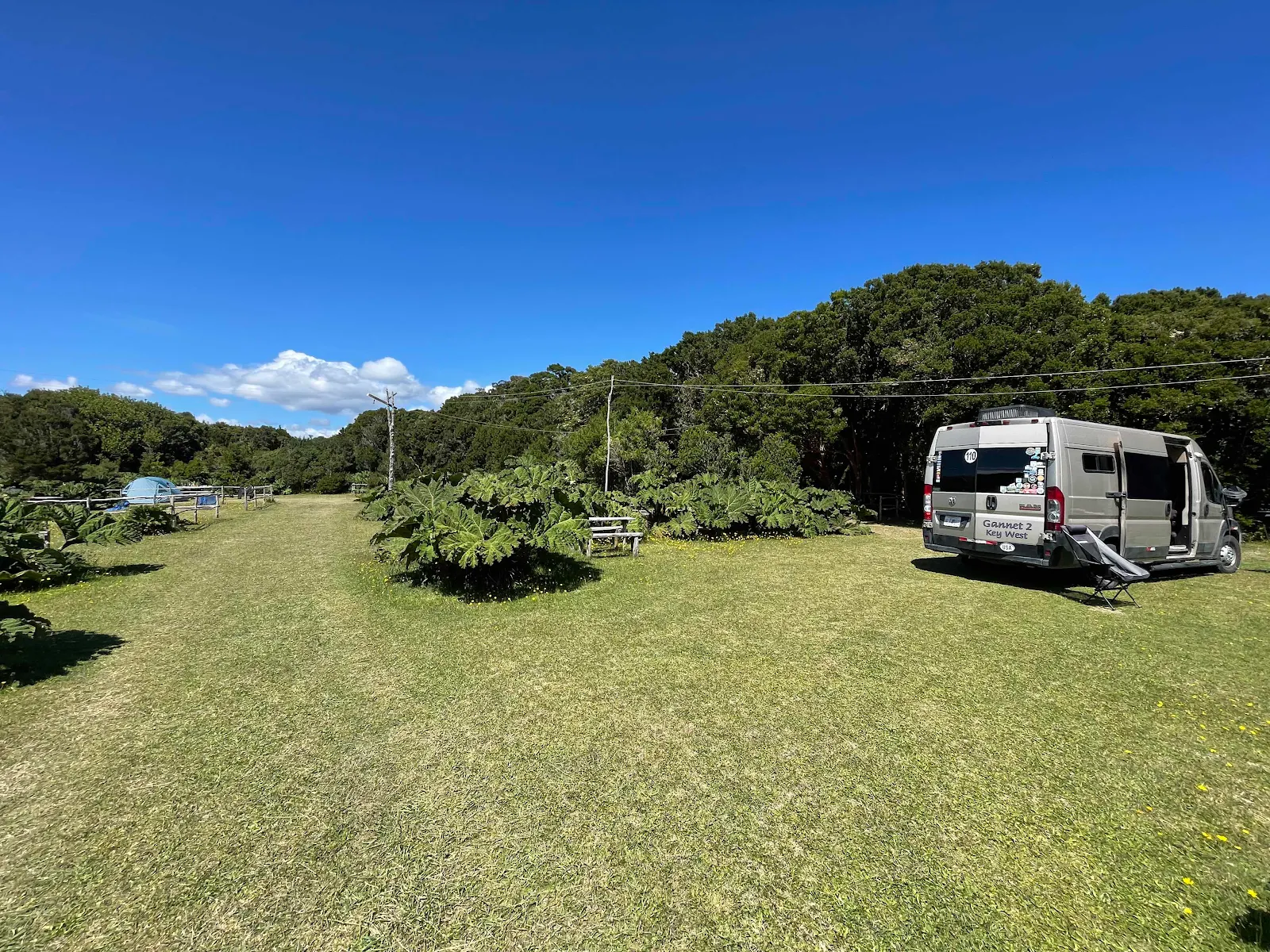 We spent the past couple of days in El Manzano (the apple tree) campground in the village of Cucao on the western side of Chiloé Island, and of the two days one was rainy and the second was, as you can see here, picture perfect. Highs in the mid 60s, a light breeze and an empty campground most of the day.