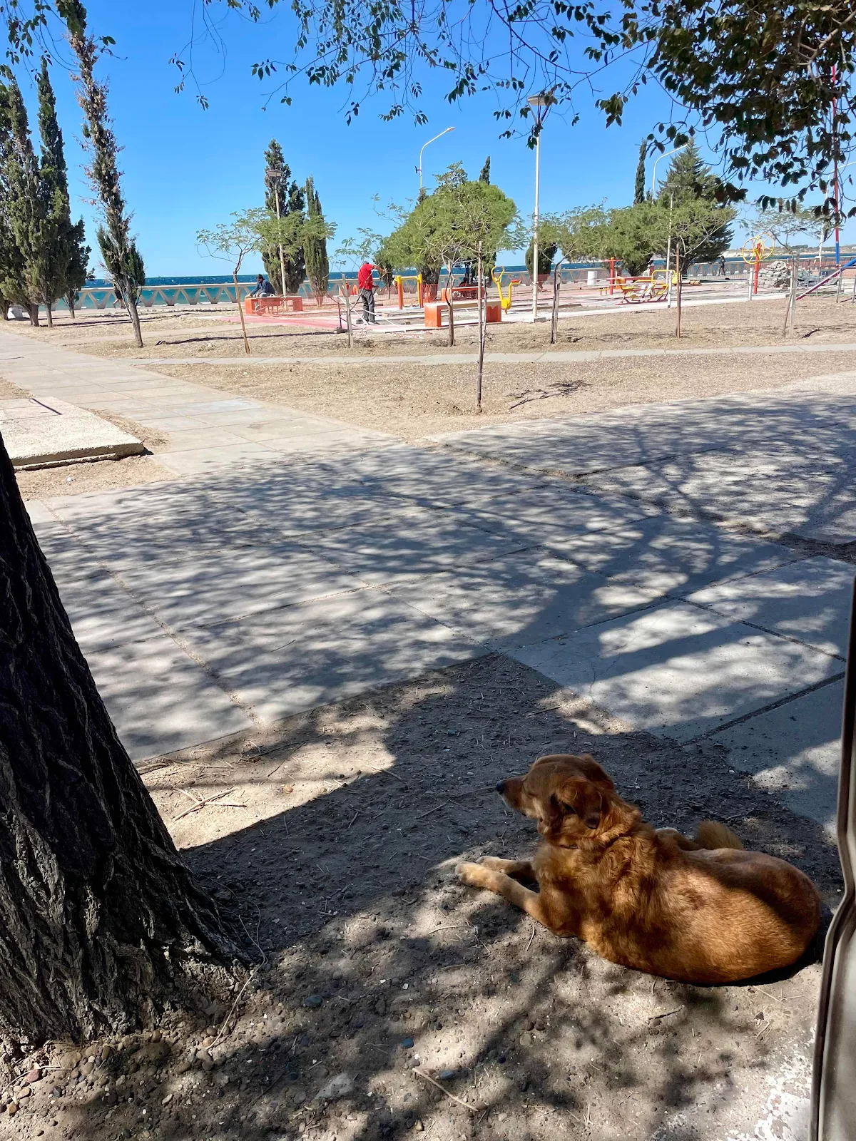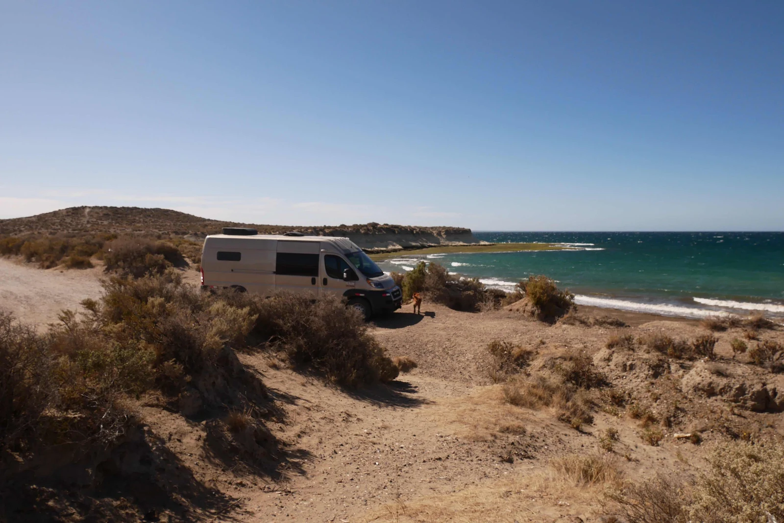 Punta Ninfas in the morning, peace, quiet, sleep and a dog walking. That was Rusty wandering around the campers.