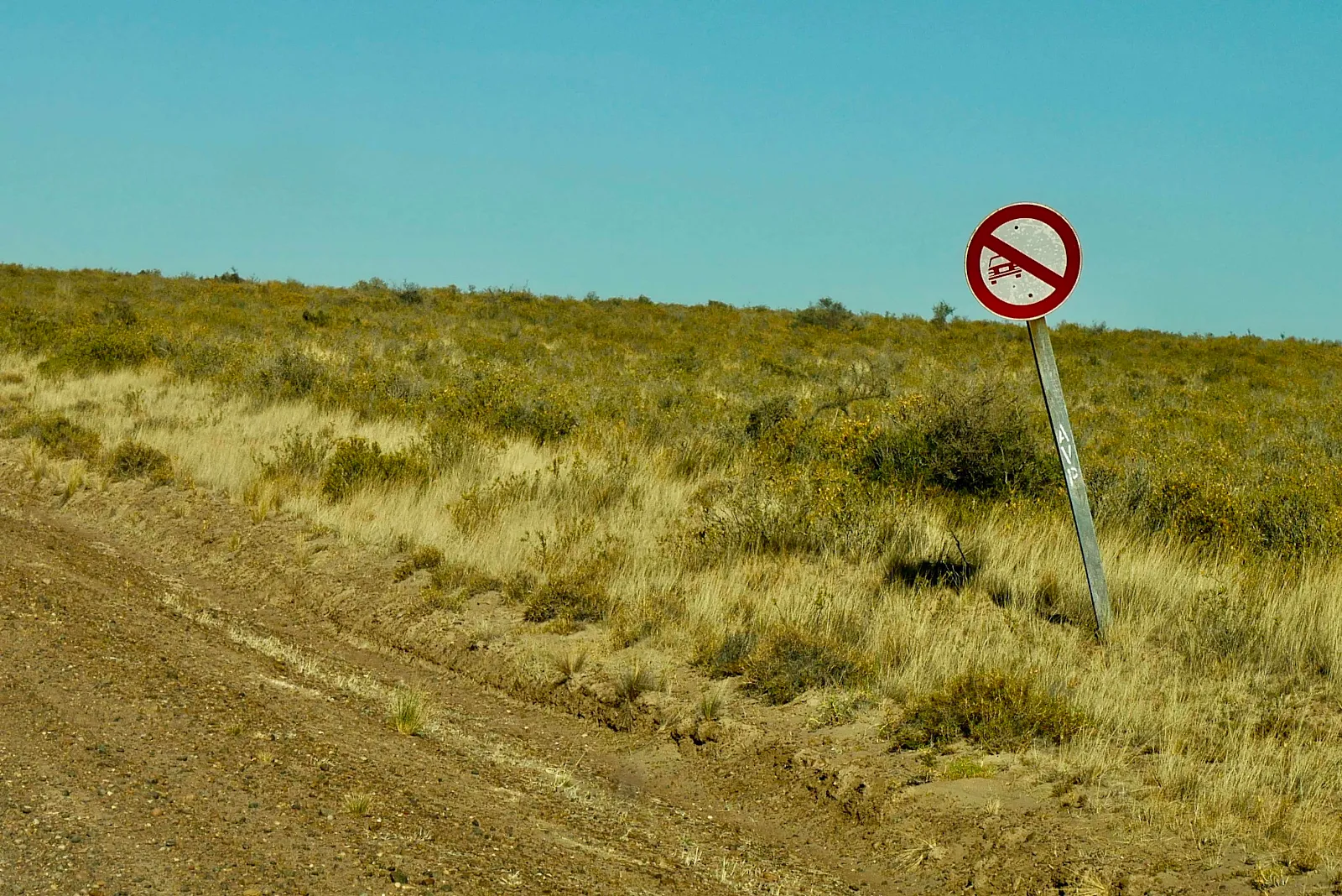 50 miles of this to Puerto Madryn. Including an old sign putting advising no passing as the road goes uphill ahead.