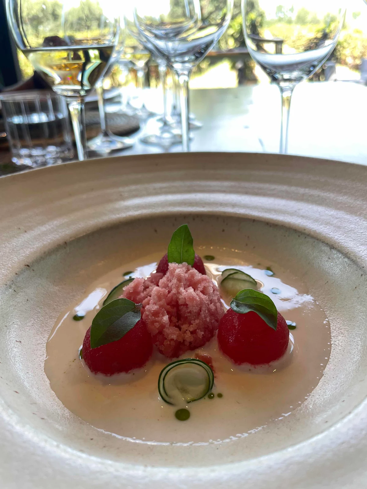 The best and weirdest course was white garlic soup with melon balls and melon sorbet. It sounds grotesque but I could have eaten just this and been happy. I’ve never been more surprised by such a bizarre pairing.