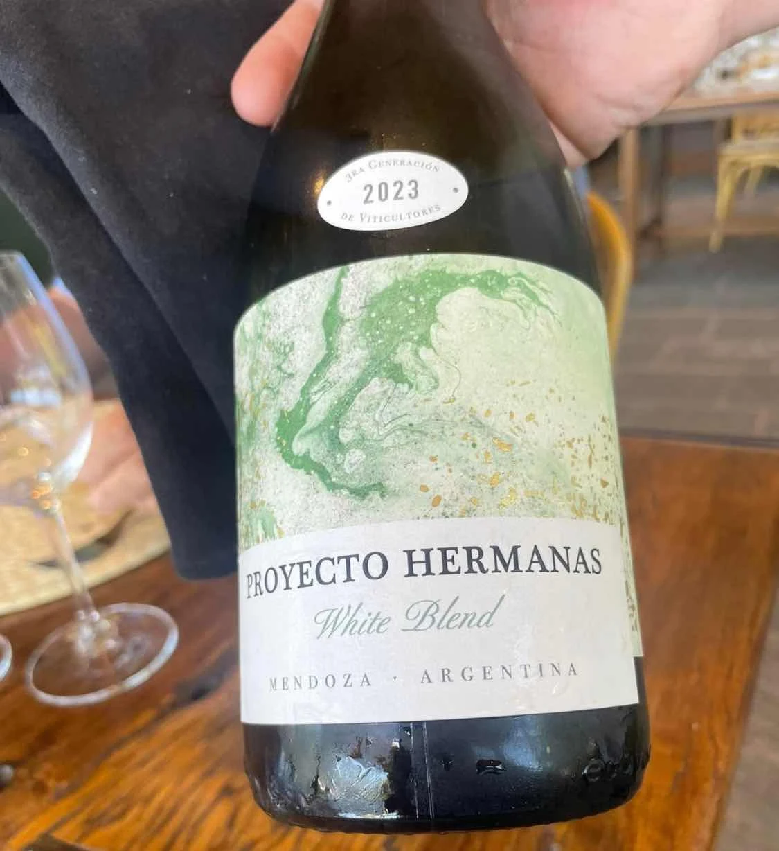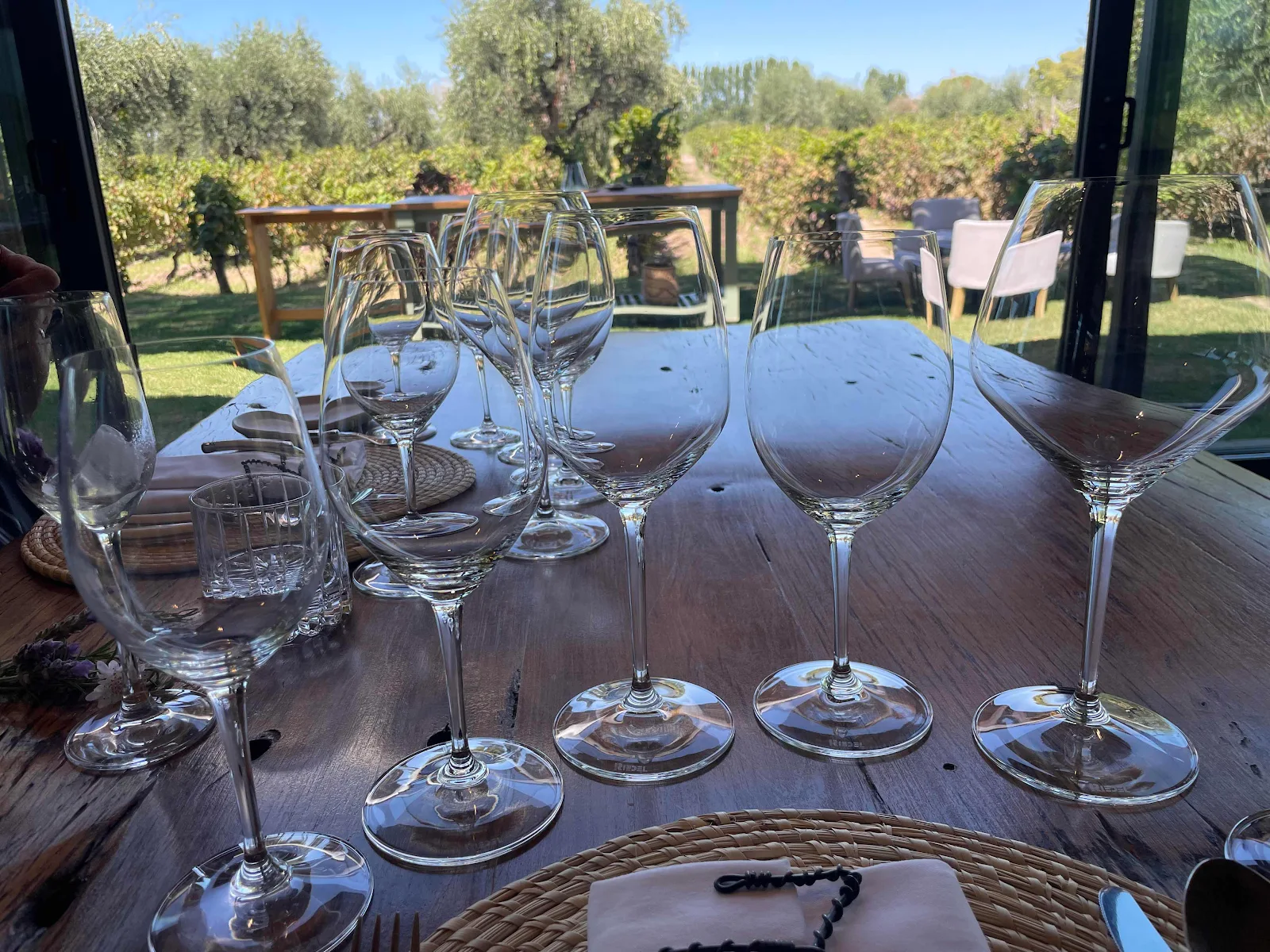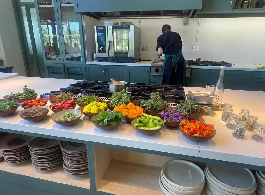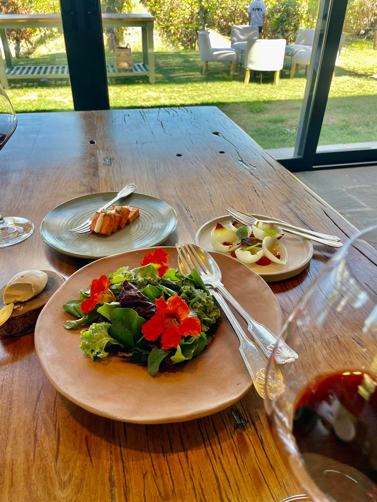 Michelin quality mise en place above and one of the first wines we tried, a Chardonnay called “Sister Project” from a nearby winery owned by two… sisters. At $40 we passed on taking one home with us, though we did check.