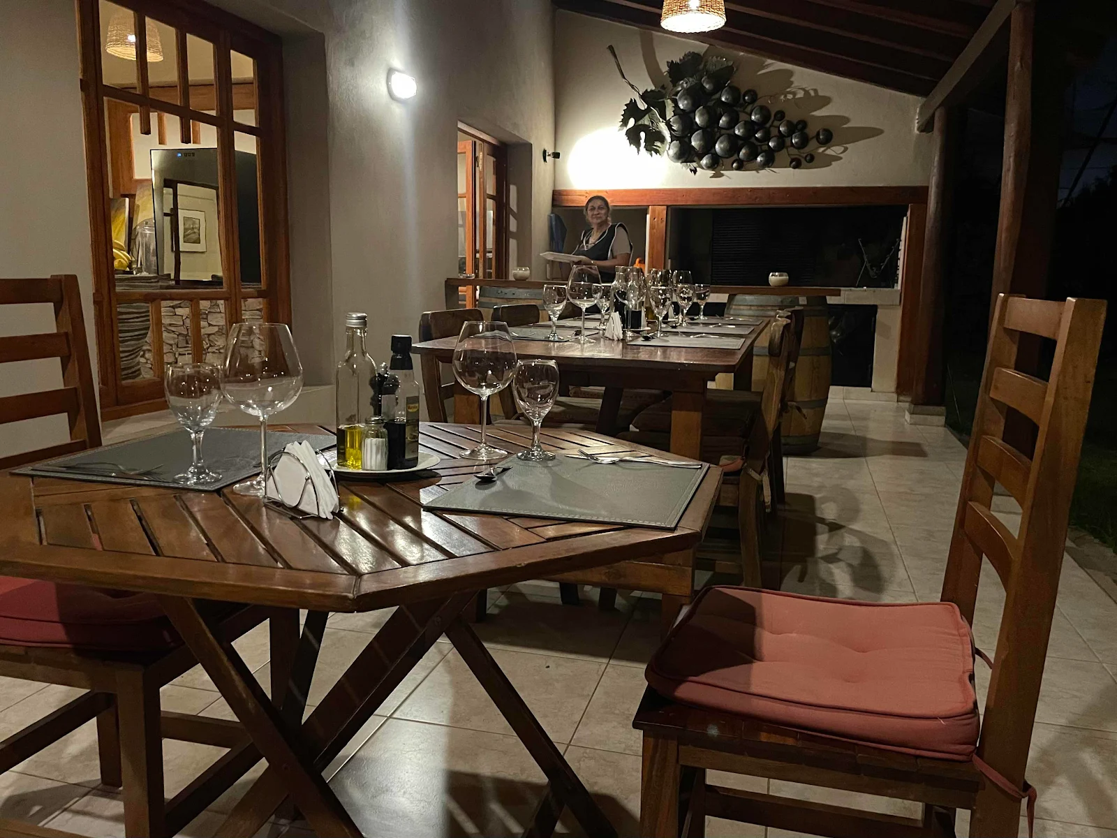 We had dinner at the hotel the other night and at $18 each for steak and salad, an empanada to start and a mousse for dessert it was, by Argentine standards a bargain. The hotel’s own Malbec cost us $13. We ate at eight pm, the earliest seating and too early for Argentina so we had the place to ourselves.