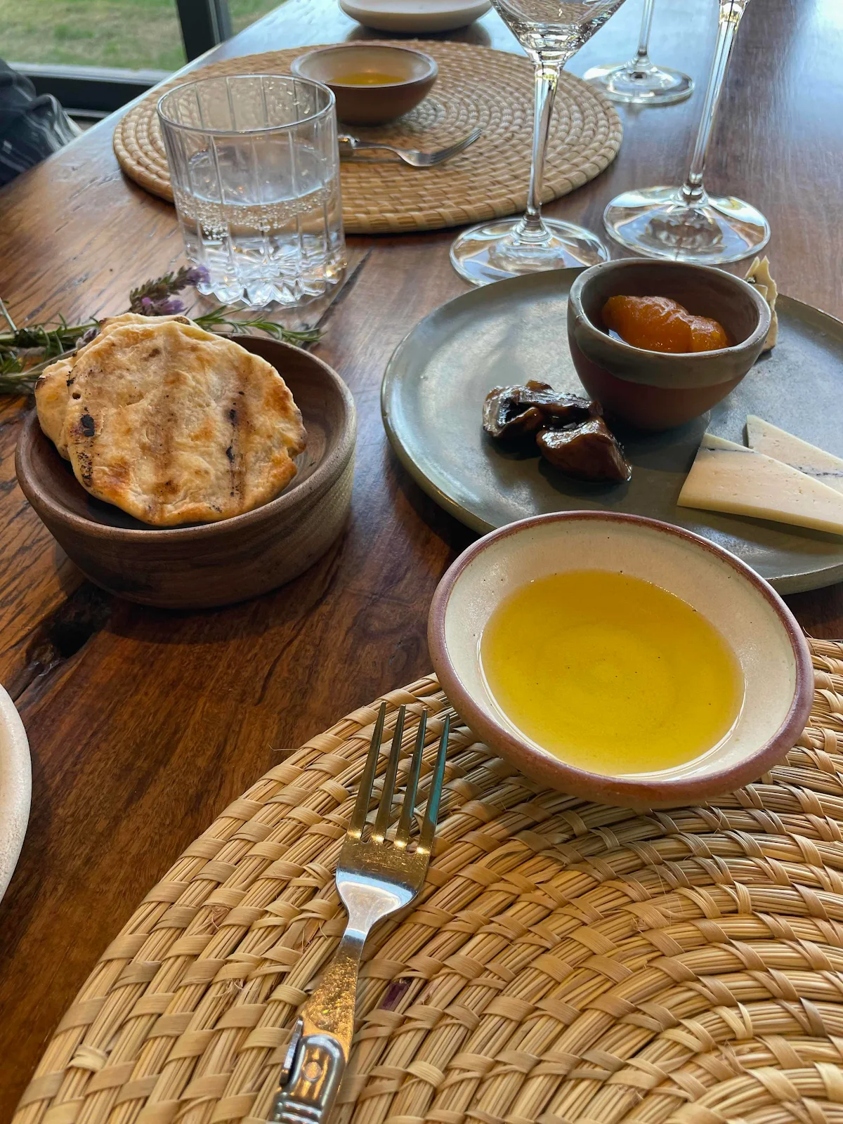 Blue cheese, sweet pickled figs and pickled peaches with grilled flatbread. Layne asked about the source of the cheese and we ended up meeting him later.