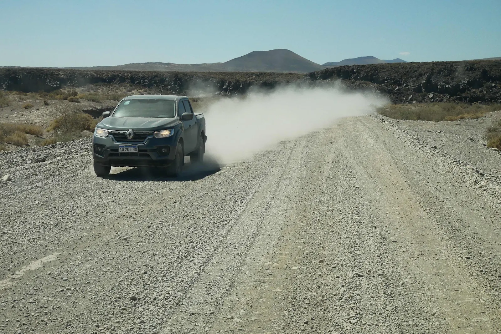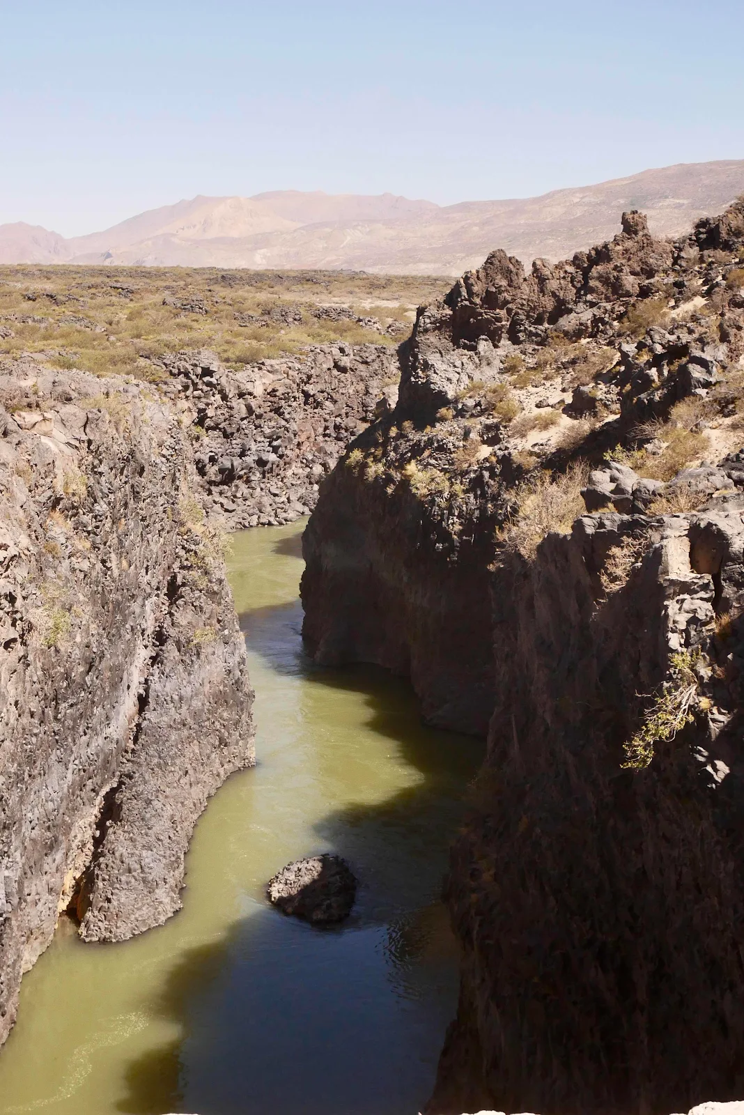 An oncoming car flashed his headlights at us and rolled down his window. “How far is the gravel?” he groaned. “40 kilometers more?” I said, “we’re each about half way.” He looked defeated. We pressed on in what Argentines call the black steppe owing to the black volcanic rock and gravel everywhere.