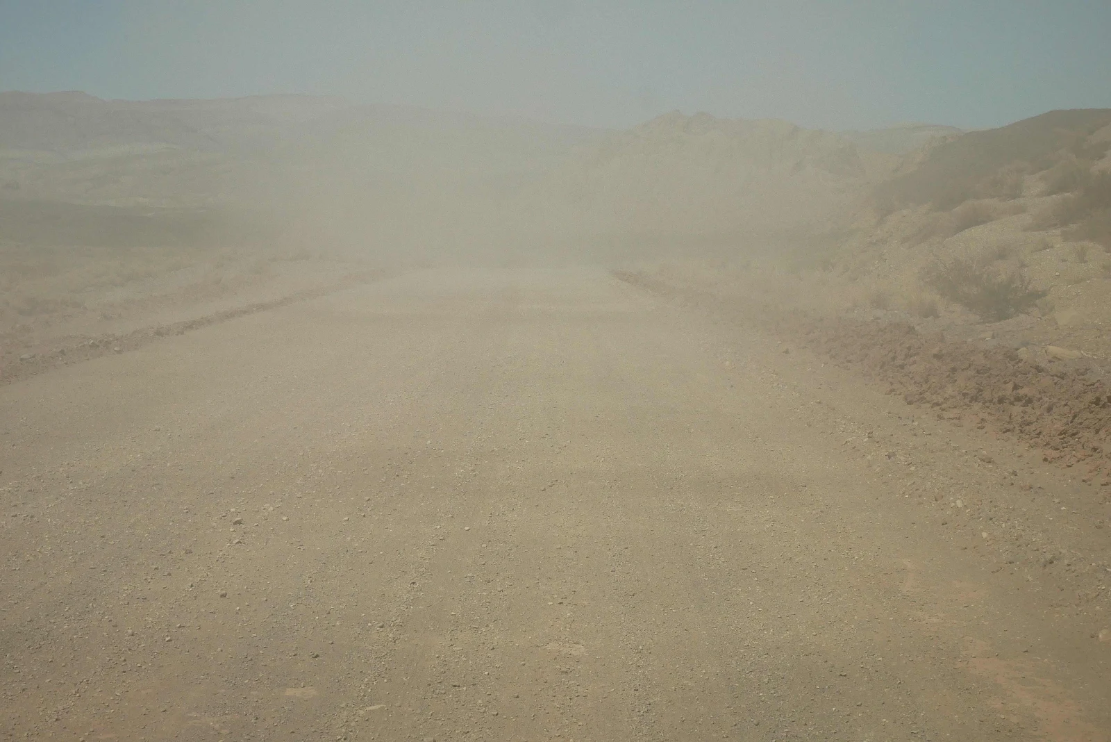 Looking ahead and seeing dust clouds means the resumption of asphalt is still beyond that point. Sigh.