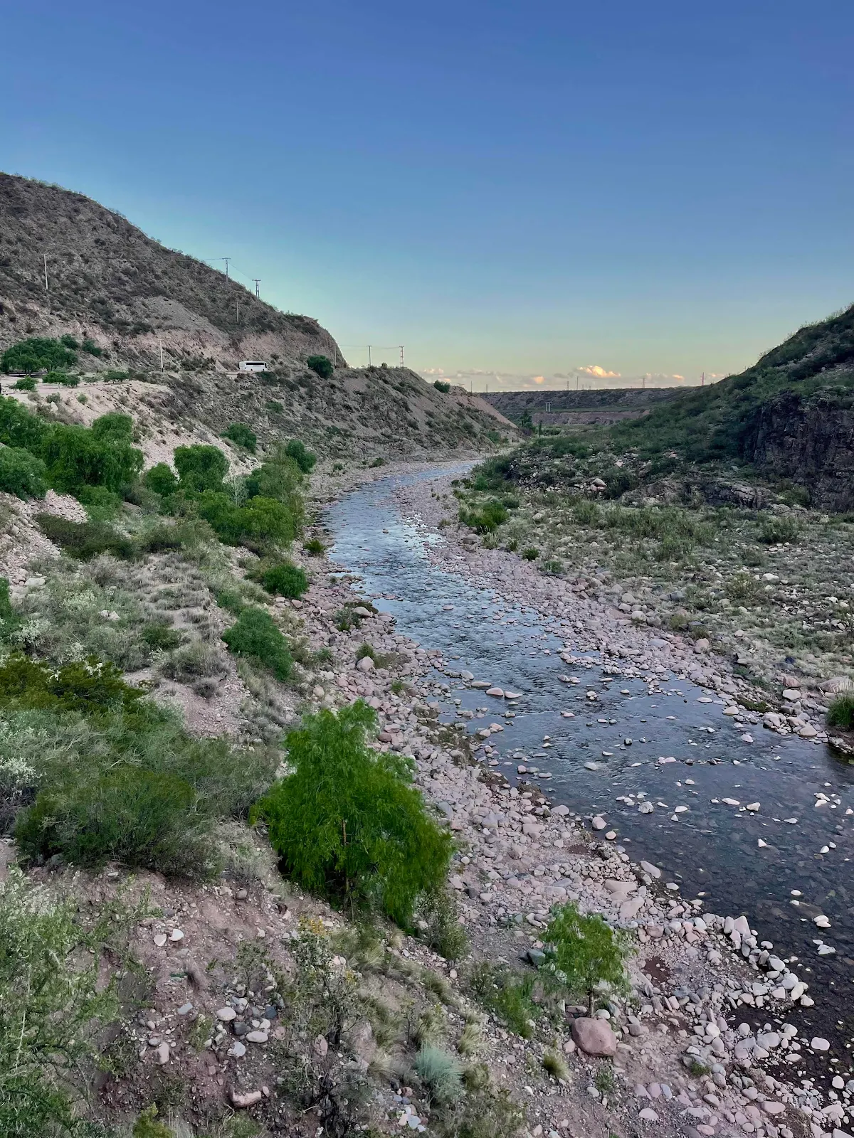 Beautiful sunny desert mornings, and much cooler than the valley this Mendoza River flows to.