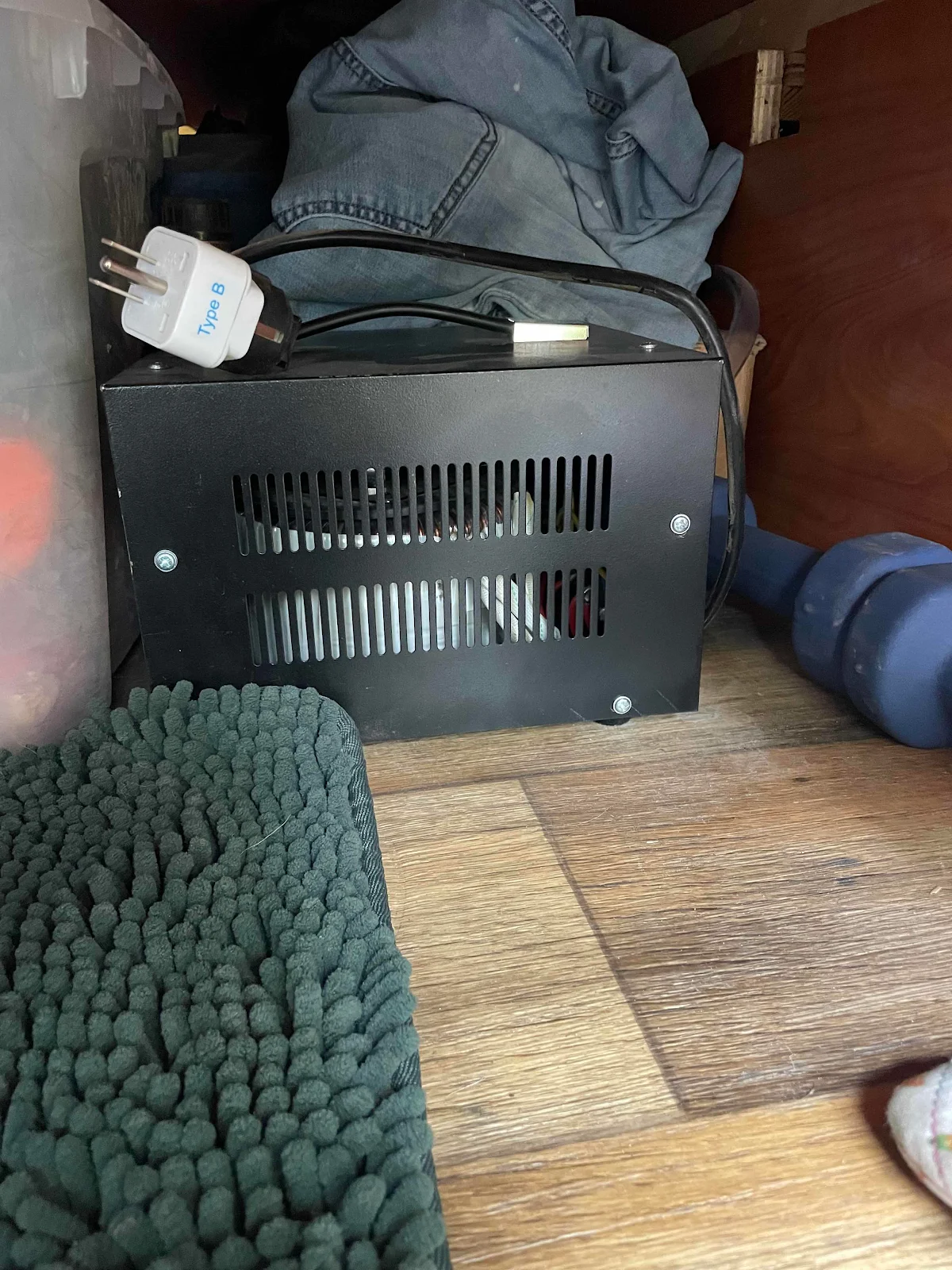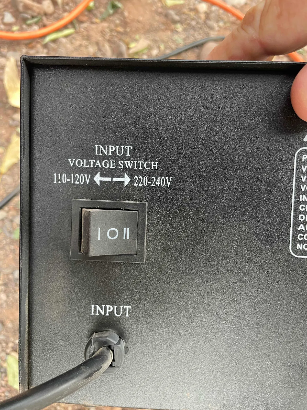Our Up/Down converter we bought in Chile after our original 800watt box proved to small to charge our batteries and burned out. This one is rated at 2000 watts and doesn’t even get warm when plugged in to GANNET2. It has a Chilean plug (below) as well bought it in Chile.