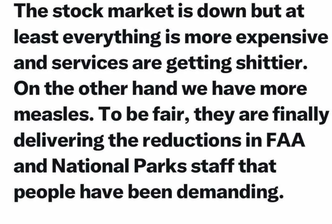 I got a message from a friend worried about not only social security but veterans benefits. America is doing nothing while President Musk attacks veteran health care. To me this is unimaginable. And yet Republicans who own Congress, the courts and half the governorships say nothing. Democrats can’t tout their achievements so I don’t expect much from them in this crisis.