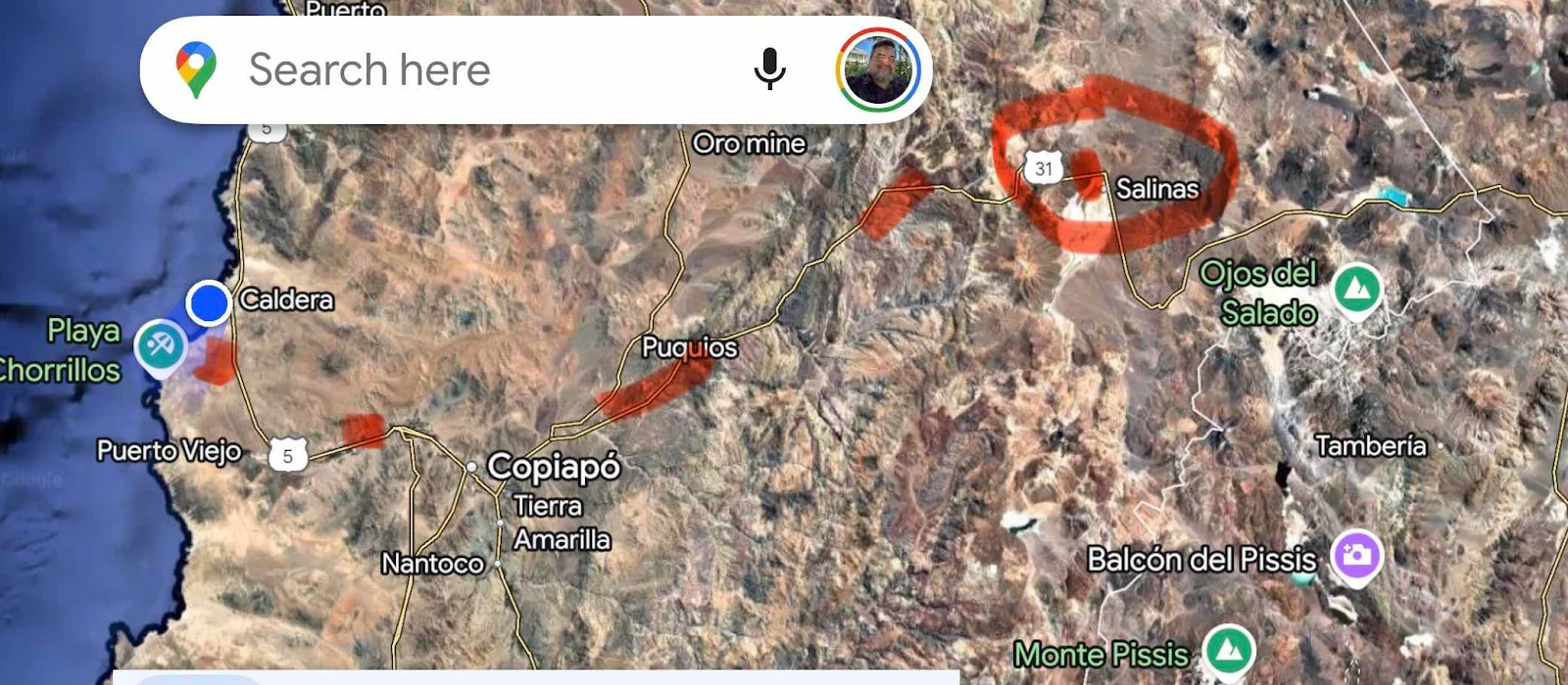 Chile Highway 31 includes 25 miles of oiled dirt road.