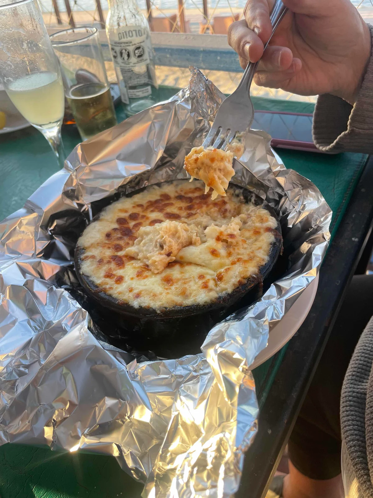 My fish came battered like fish and chips cod which was a surprise but delicious. Layne had crab stew.
