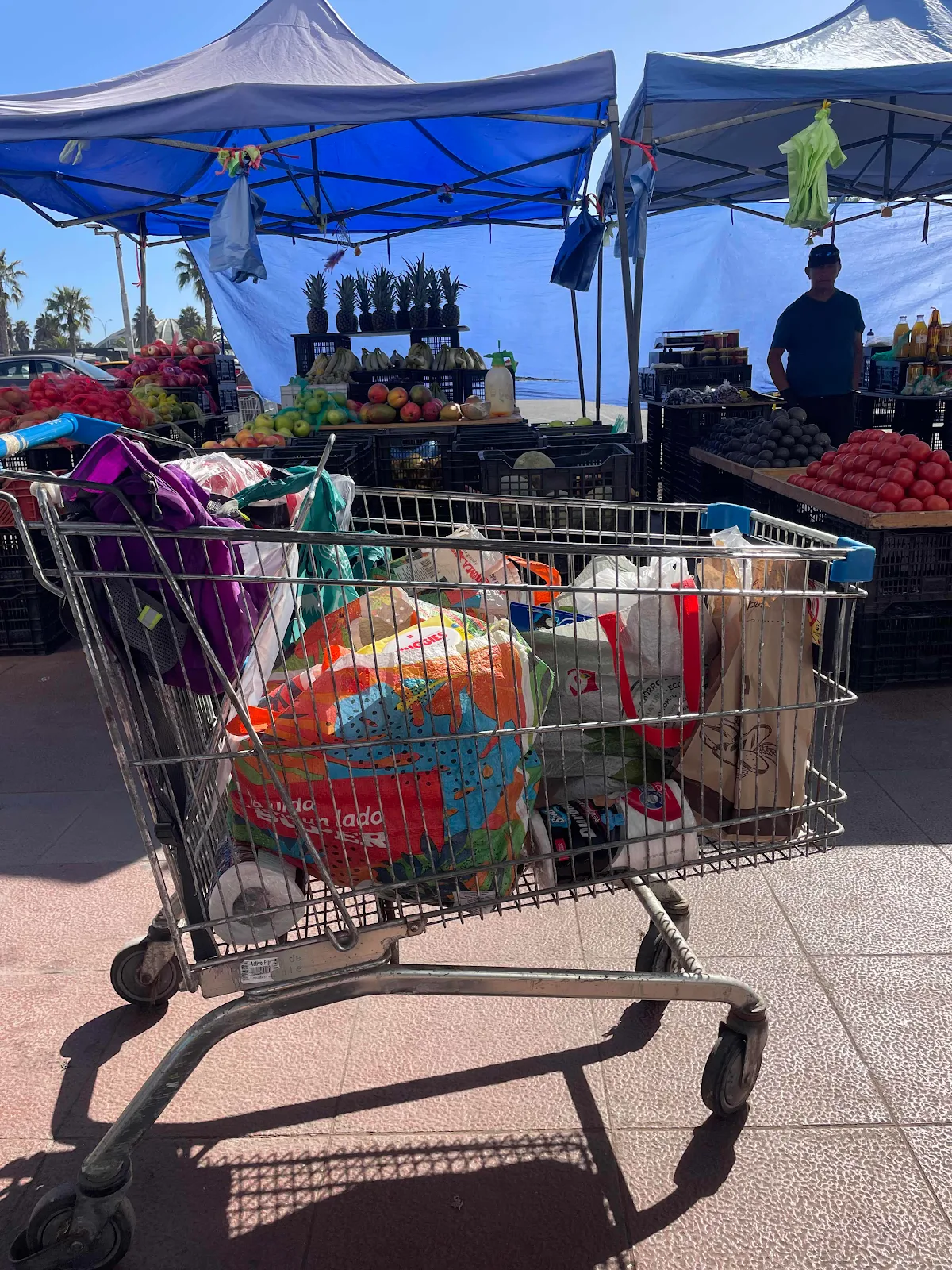 Supermarkets tend to refrigerate their produce but Layne likes fruit stands when she can find them and here was this one outside Lider. How convenient. I sat and waited.