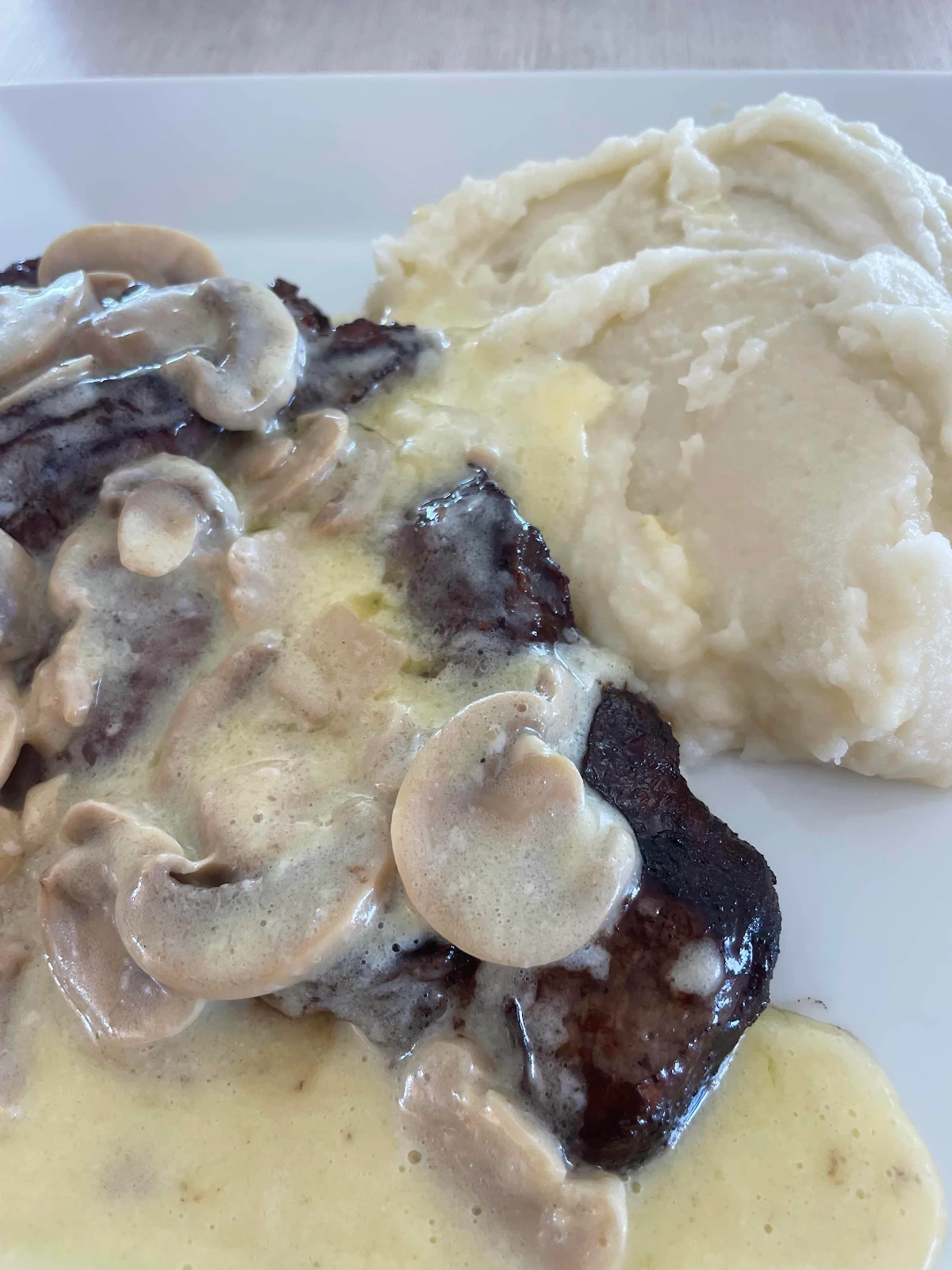 Then we shared a steak in a mushroom sauce with mashed potatoes. Any questions?