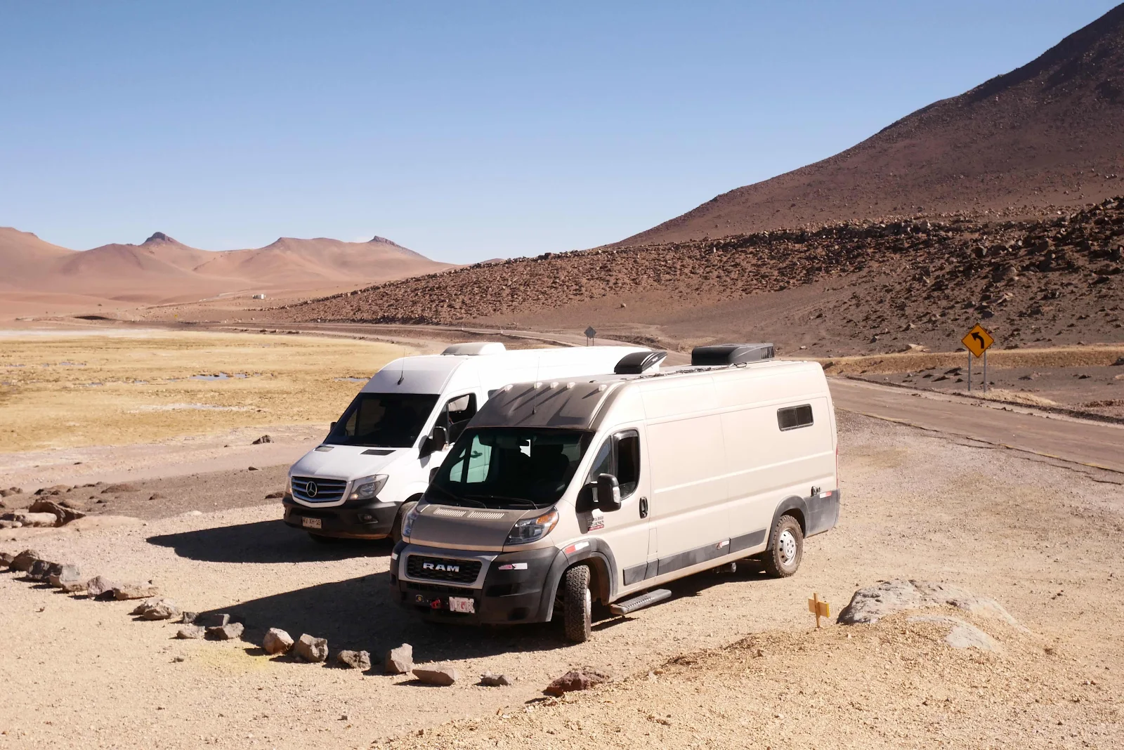 There is a road that goes north into Bolivia from here. It’s used mostly by tours which take people to see the flamingos in the salt ponds in southern Bolivia and you can do a tour from San Pedro in Chile, which is the nearest town. But this road is also used by overlanders who want a bit of adventure, a journey with a truly uncertain outcome. It’s about 300 miles of non maintained dirt track at 12,000 or more feet and Bolivia is so poor you are totally on your own, no SOS phones, no military patrols, no nothing. Overlanders do not travel it alone. We in our 9400 pound delivery van  aren’t going to even try. That’s how you destroy your transmission driving the Laguna Route.