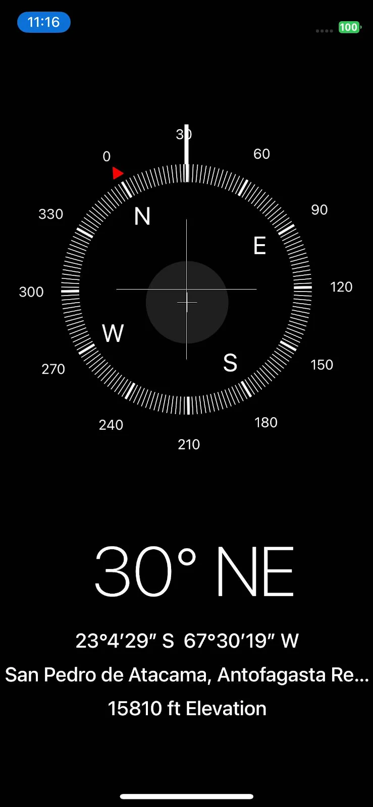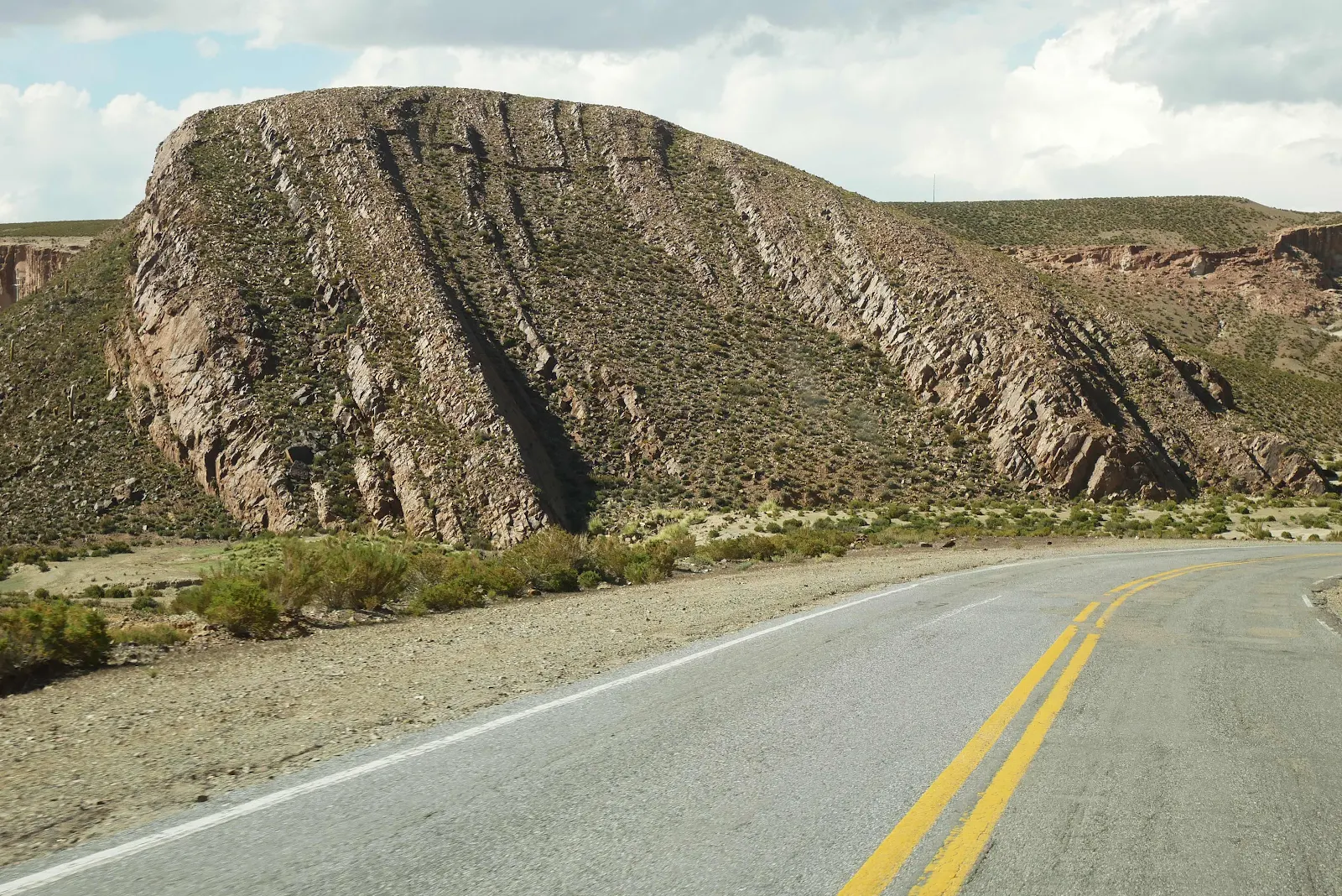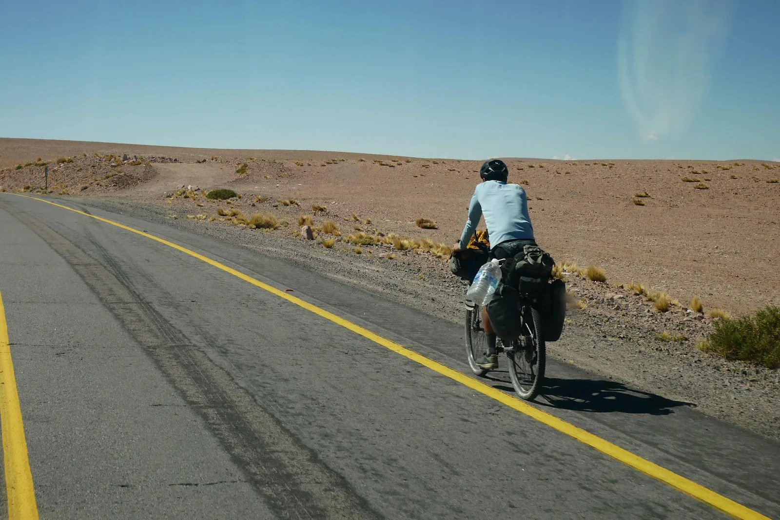 The Jama Pass itself was a total letdown. It’s in Chile, not on the border but there were no signs or anything to photograph. I knew we were close   because I took a screen shot of our highest point yet. But the pass itself came and went unmarked and suddenly we were descending. We passed 15,900 feet and nothing to show for it. Grrr.