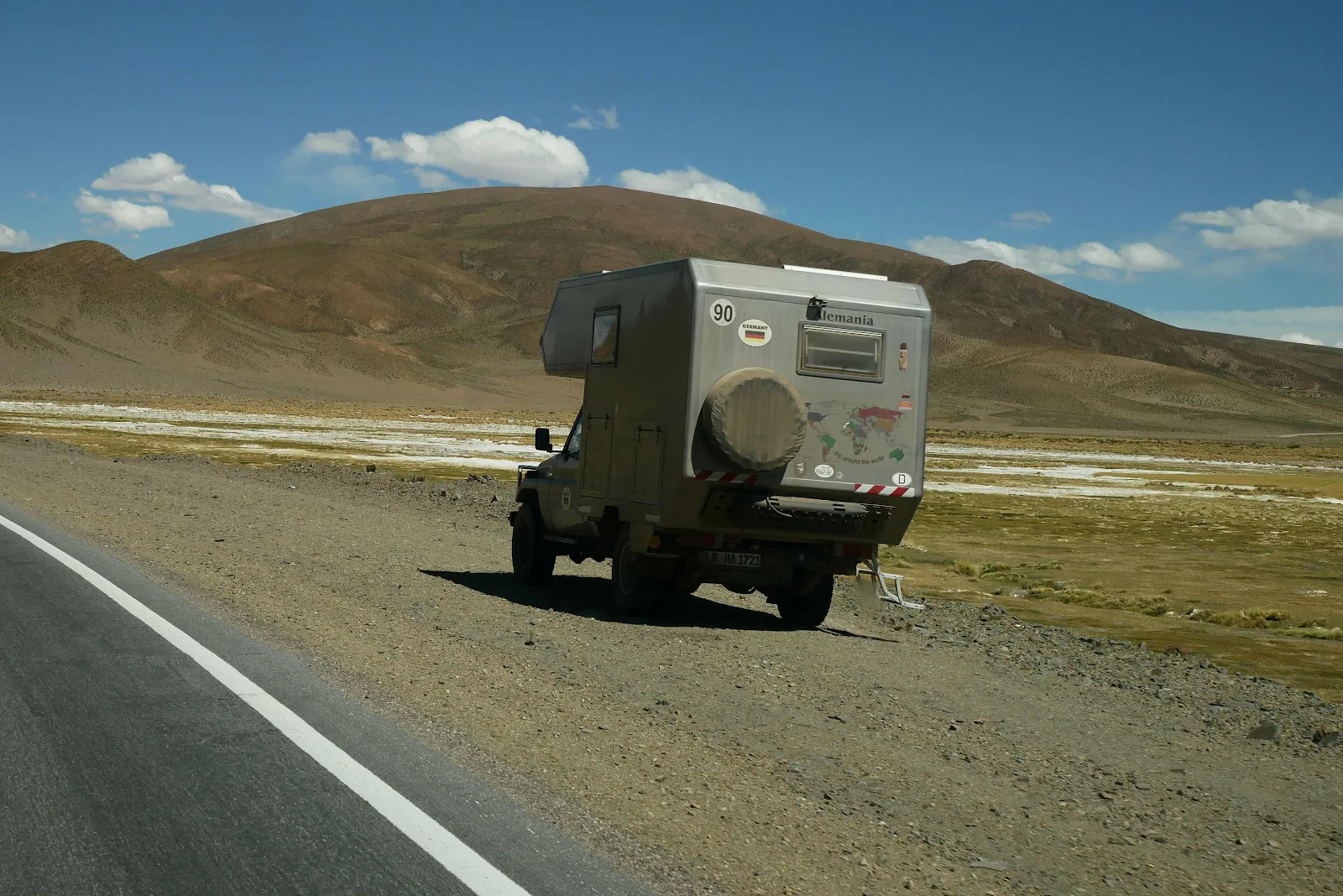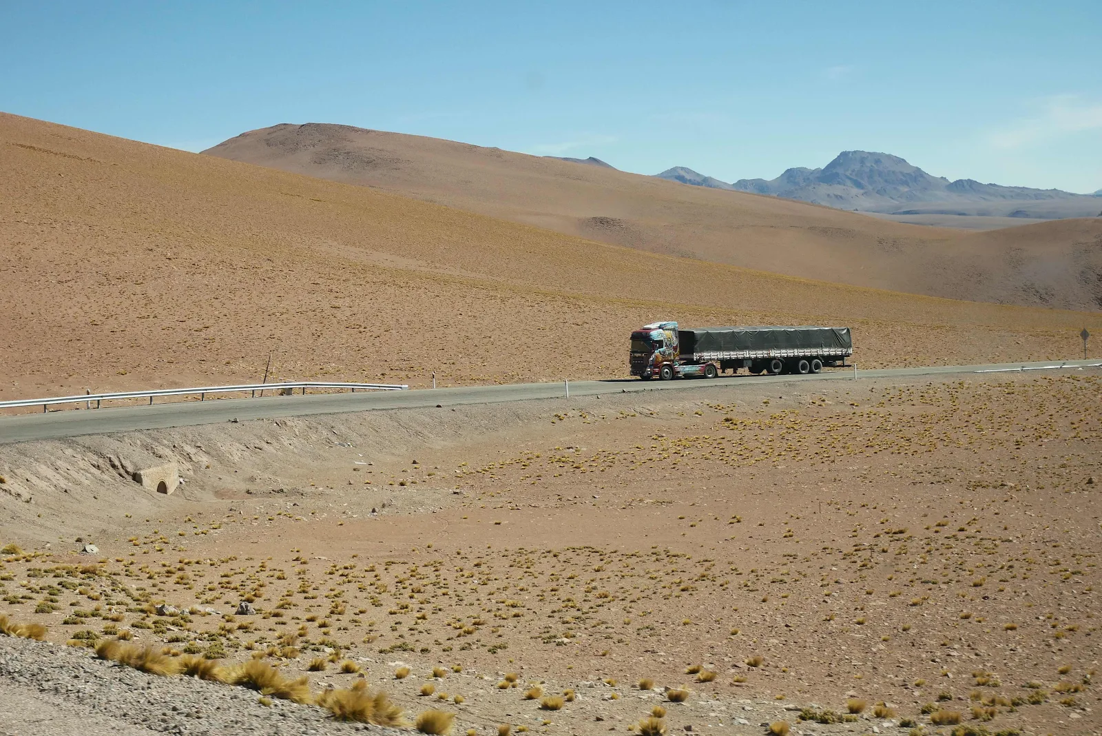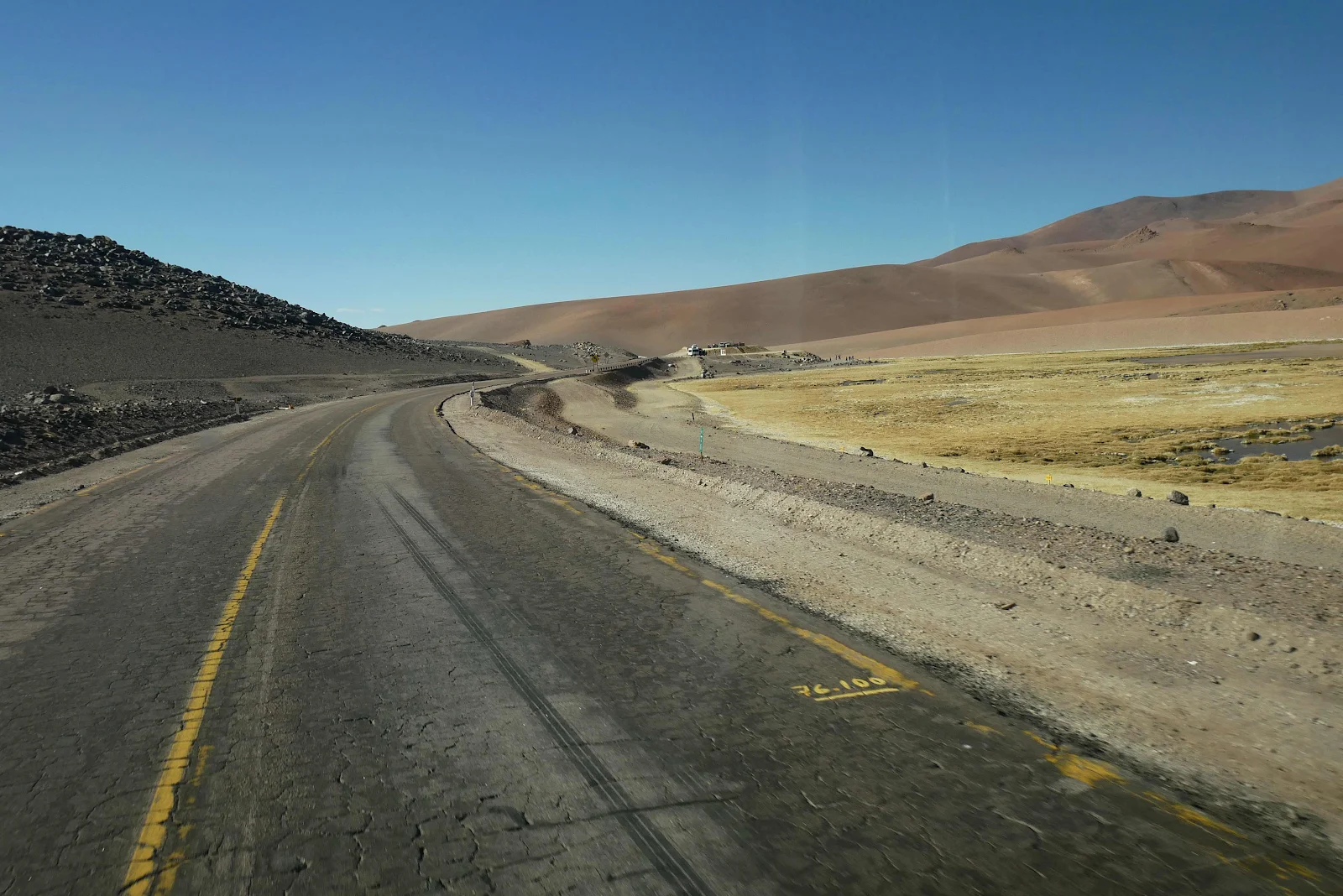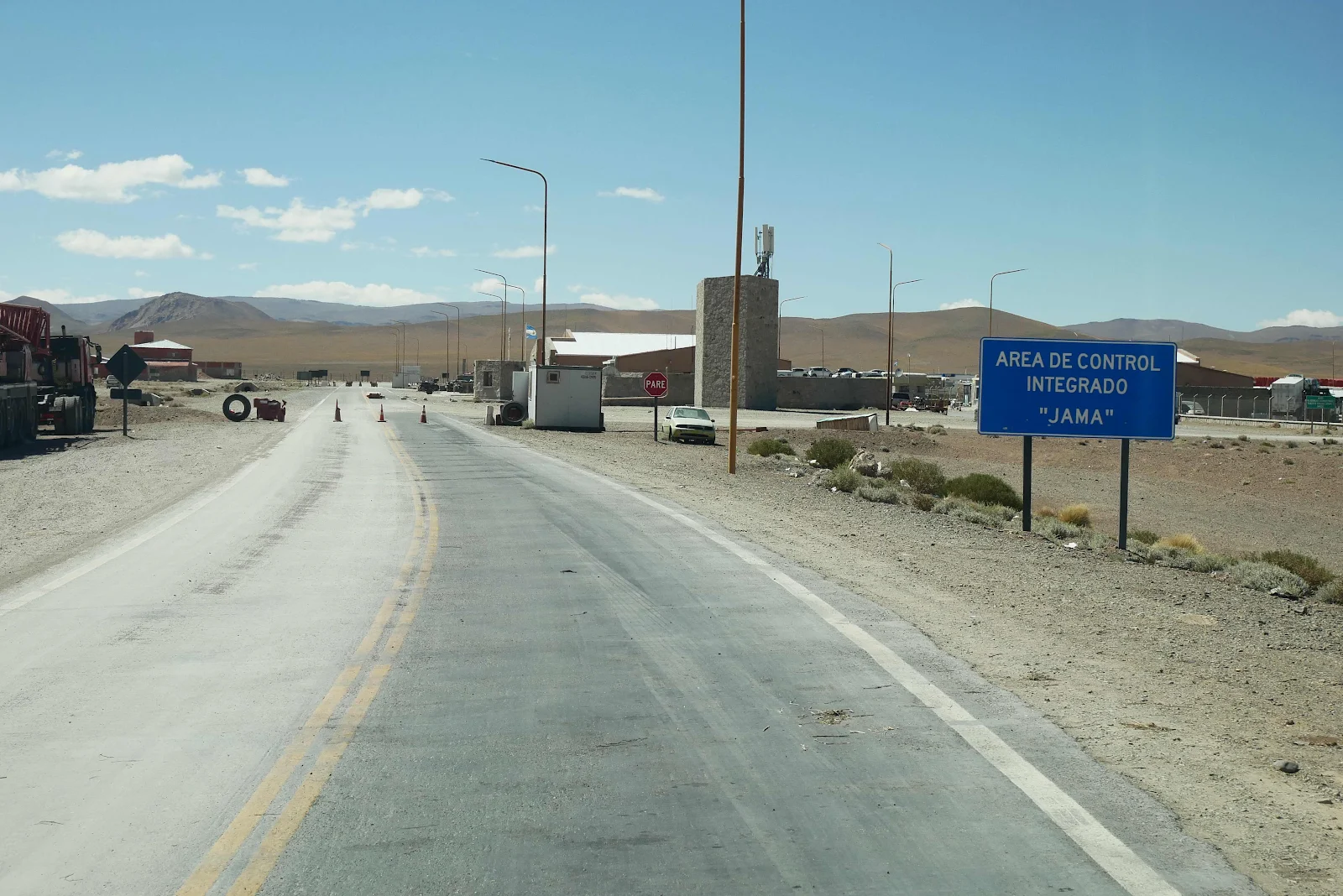 This is the actual border, a line crossing the highway on the descent to the customs post in the valley below at 13,500 feet.