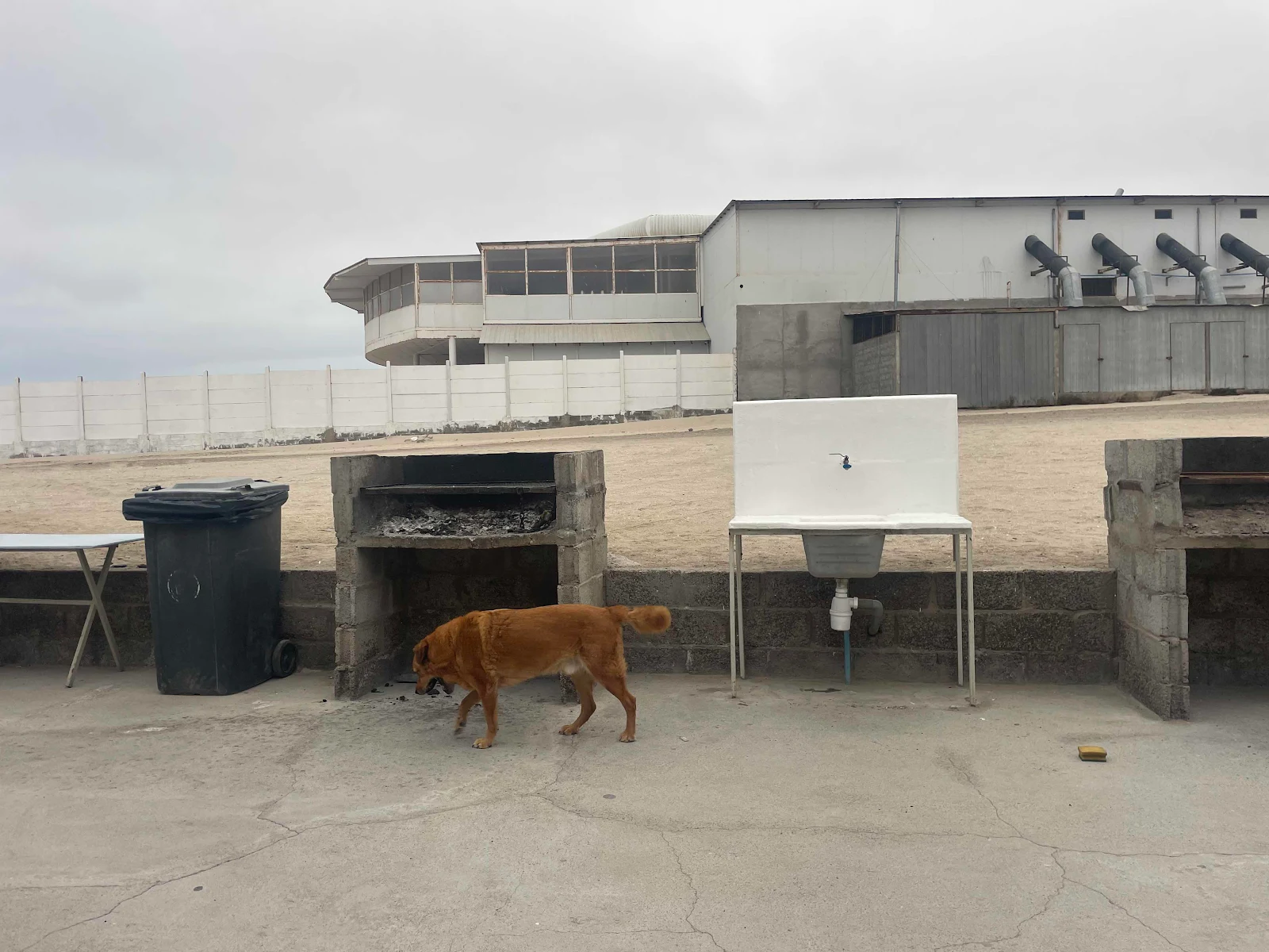 It is in some respects lonely inasmuch as we were here with Cora and Florian in November and more recently with Julia and Konstantin but it is pleasantly empty during the weekdays. If it looks melancholic then that is not unreasonable. As for the rather bizarre building next door I have no idea maybe a long since abandoned restaurant. The radiator is expected at the shop “today of tomorrow…” per the latest.