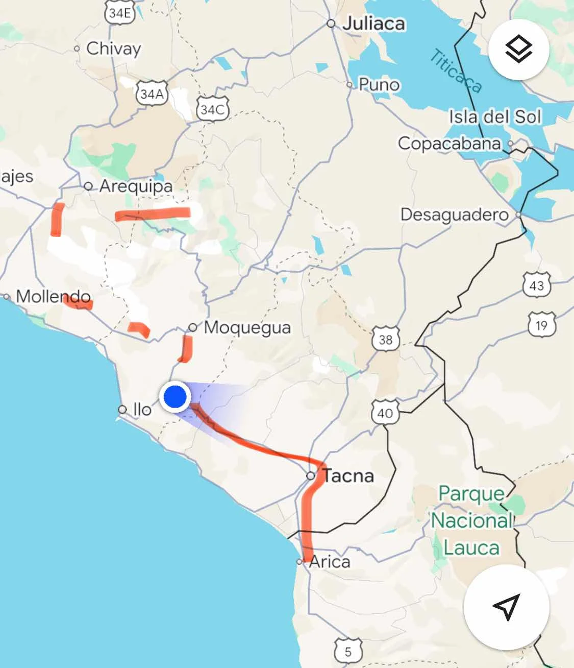 And it wasn’t over as iOverlander warned us of a customs (“Sunat”) checkpoint ahead …sure enough. It’s not uncommon for these a few miles inside the border. Often countries allow citizens to cross borders with more relaxed rules to allow shopping and family visits but if you depart for the interior they want to make sure you are properly documented. Hence the checkpoint a half hour from Tacna.