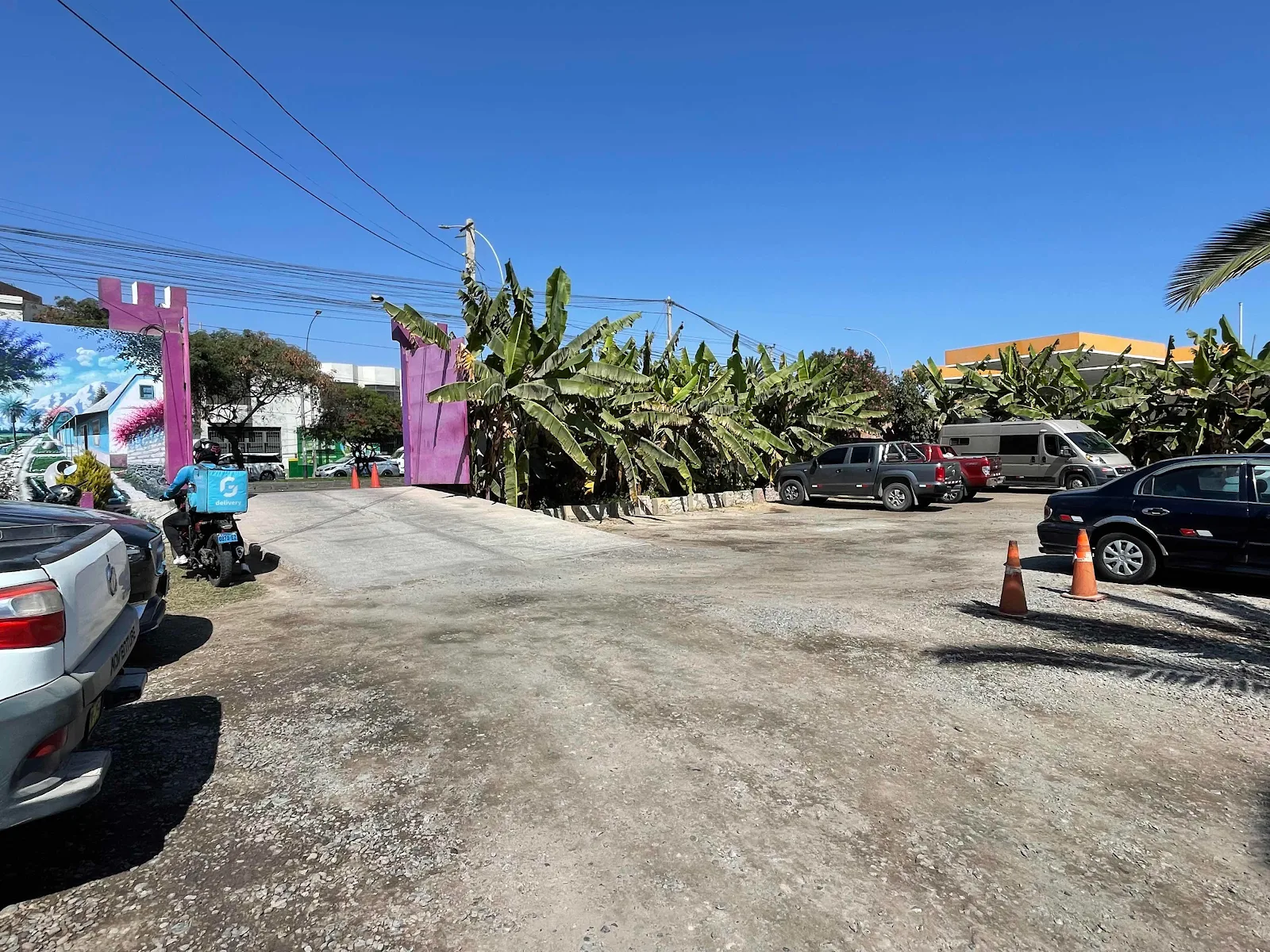 Below you can see the cones that mark the entrance to the bank kept clear for pedestrians. The cards were slow on our first use in a new country and we had to deal with security messages texted to our phones but eventually we got a paltry $200 in Soles and Layne was mad they wouldn’t yield more. While she was sorting the cash and grumbling in the back a woman motorcycle cop with a horrendous scowl pulled alongside and wagged a large gloved finger at me.