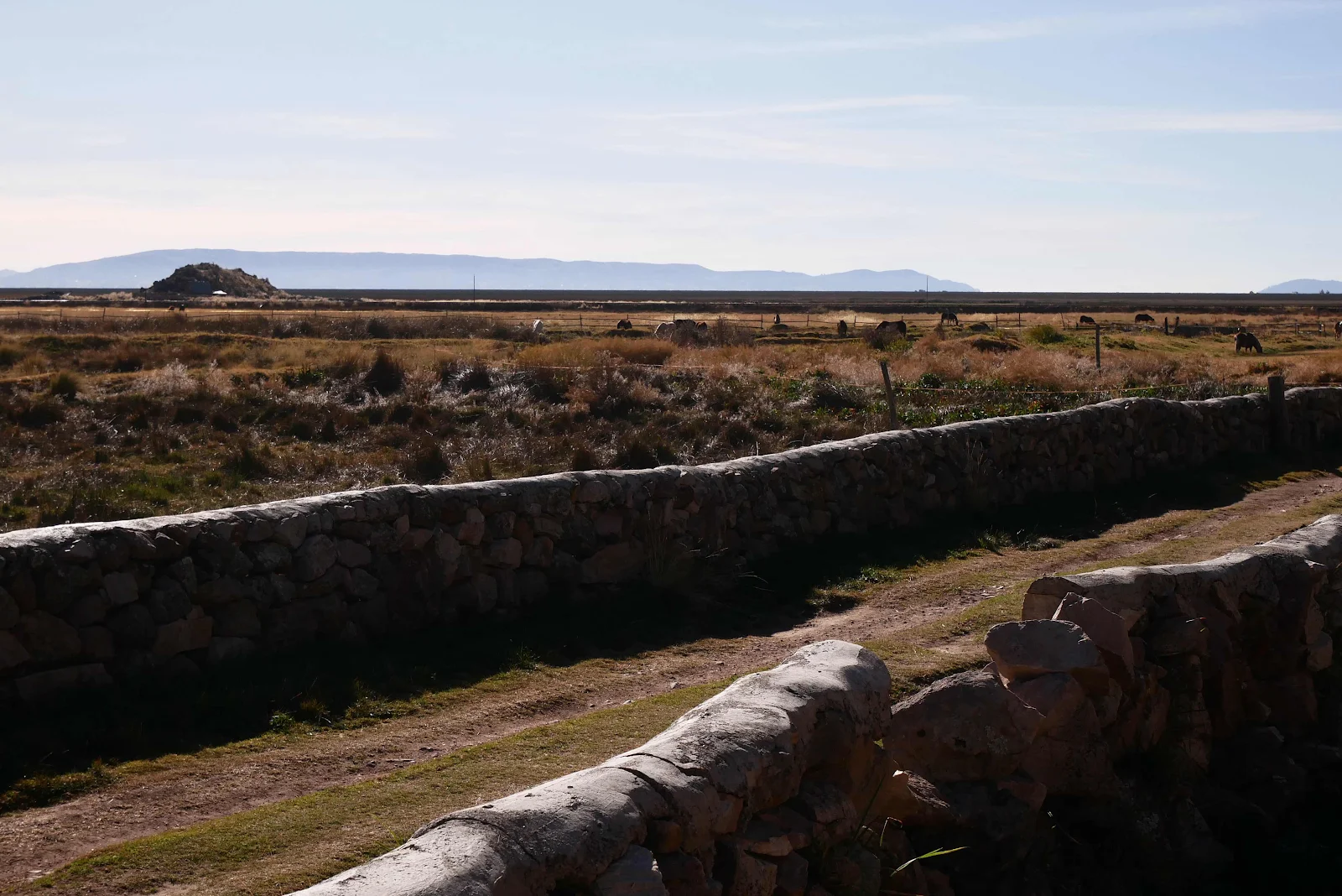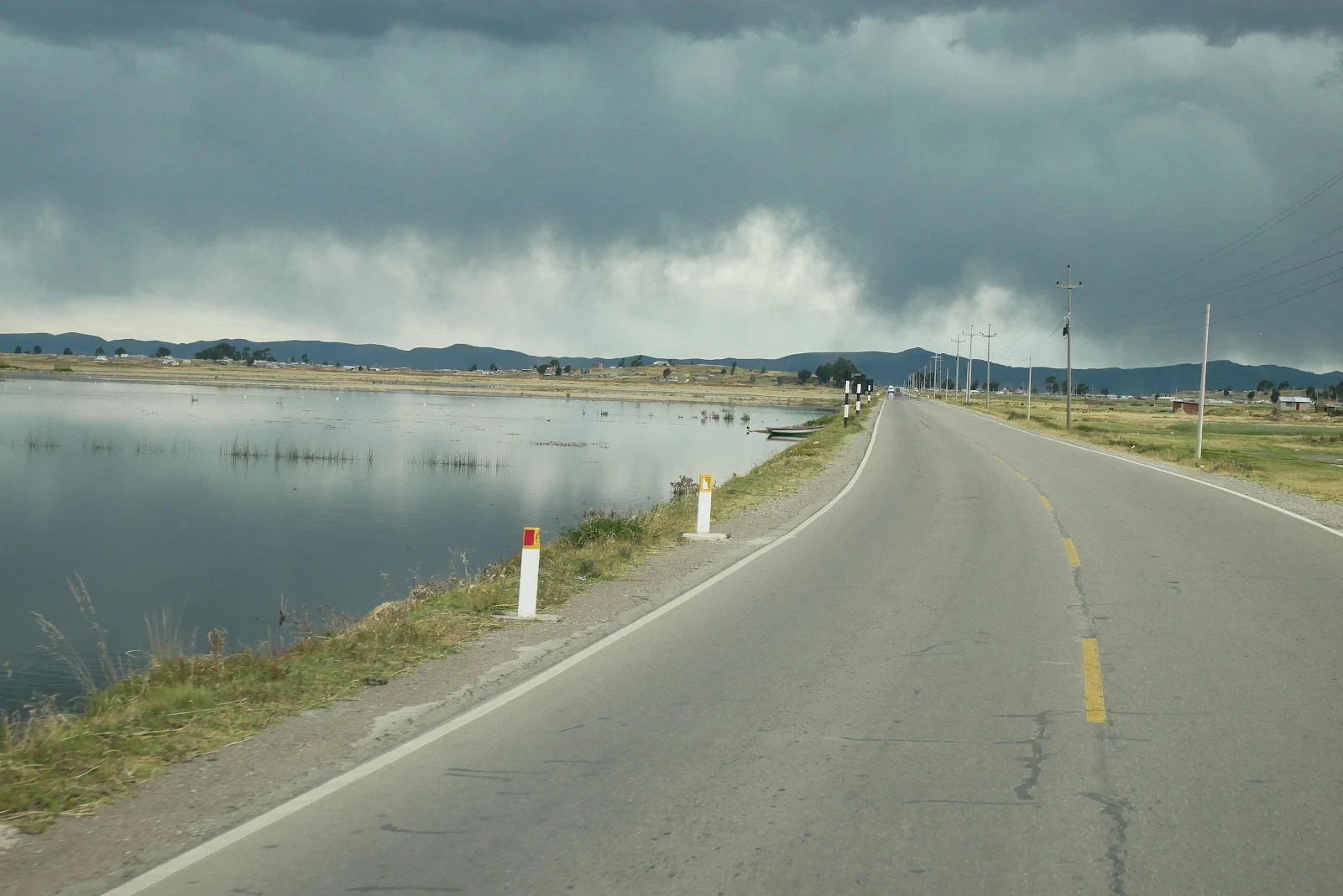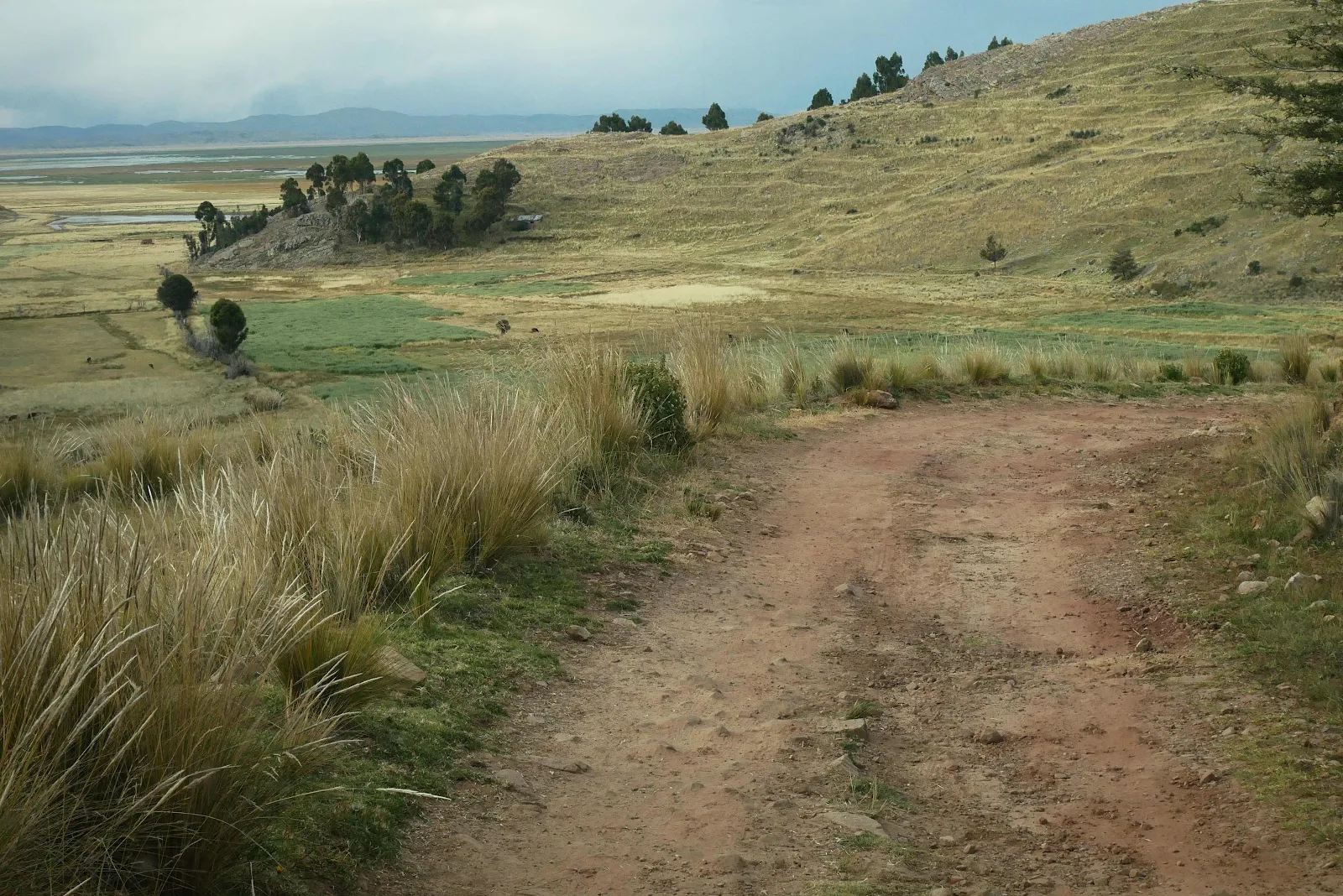 That’s the road to Puno, up on the hill, the city twenty minutes away, where we came down the dirt track: