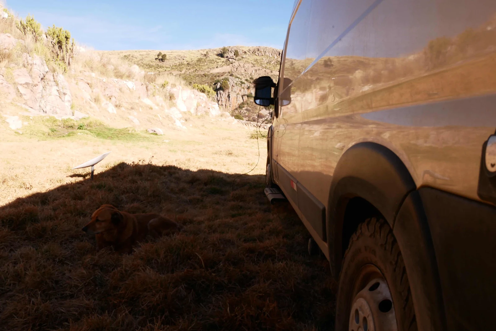 It’s a working farm owned by a man who speaks several languages, likes dogs and has several and gave us a field to park in. He might be Peruvian or Dutch we weren’t sure but his lovely wife is Australian. Our day had started at five and had gone to 16,000 feet.