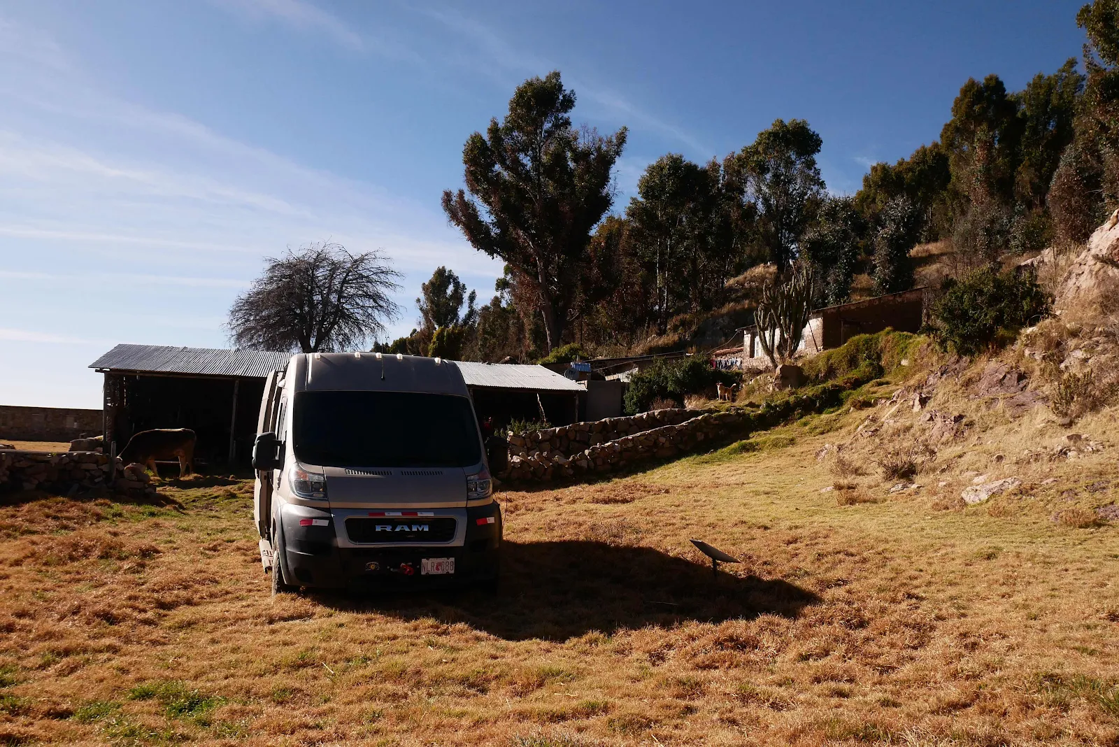 Puno does not have the best reputation for vehicle safety so we were looking for a campground to leave GANNET2 and Rusty (the non water dog) while we spent three hours touring the lake.