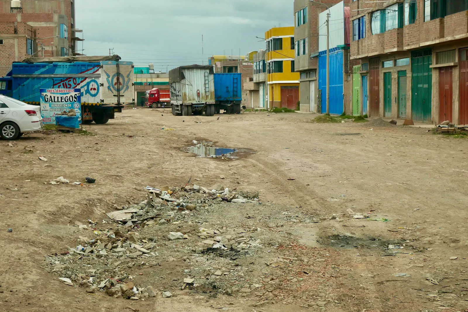 We went back through the gruesome traffic of Juliaca and Google maps found a shortcut that was just awful. Then there was a street festival in progress and we had to work our way round backstreets. This is a backstreet in Juliaca you may be surprised to learn: