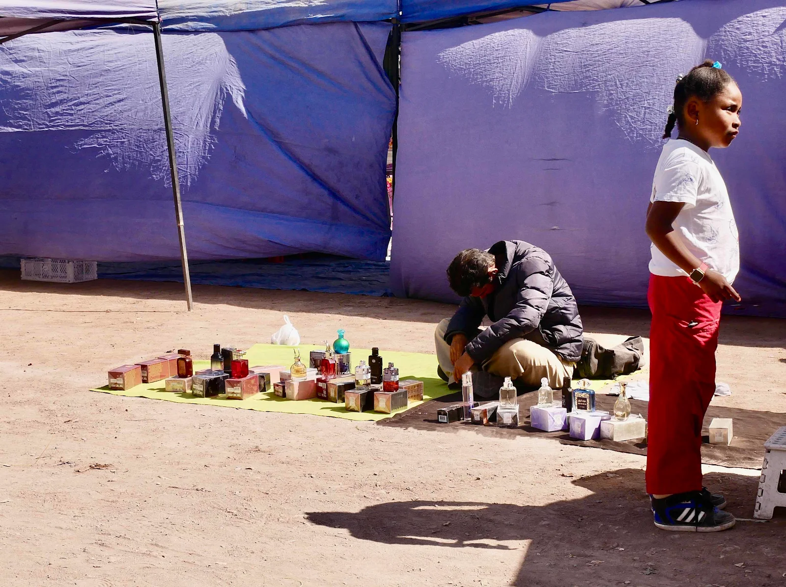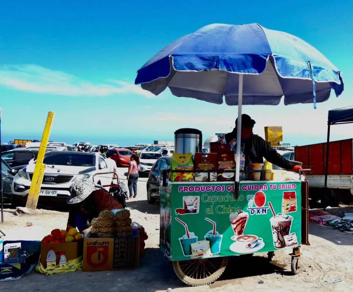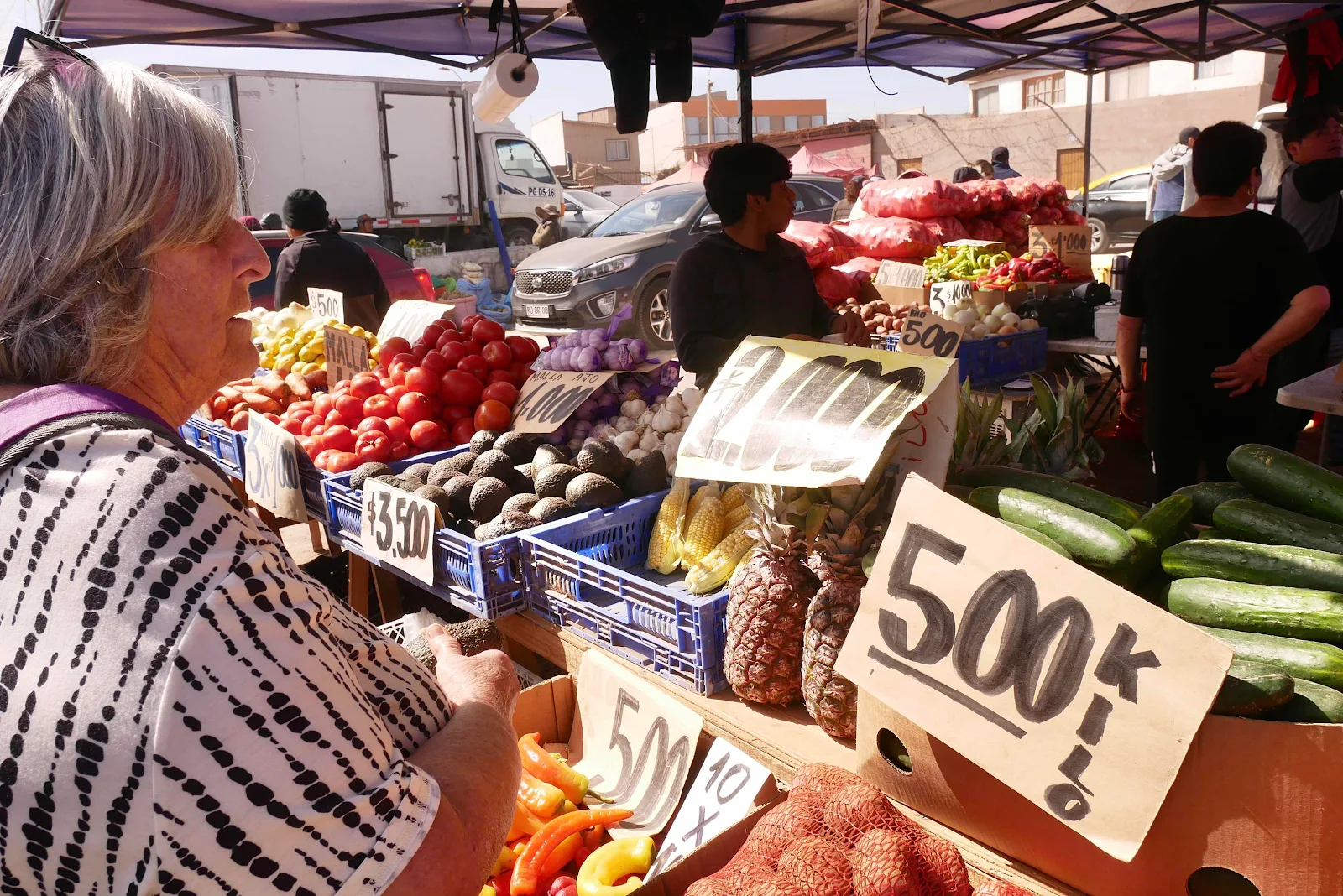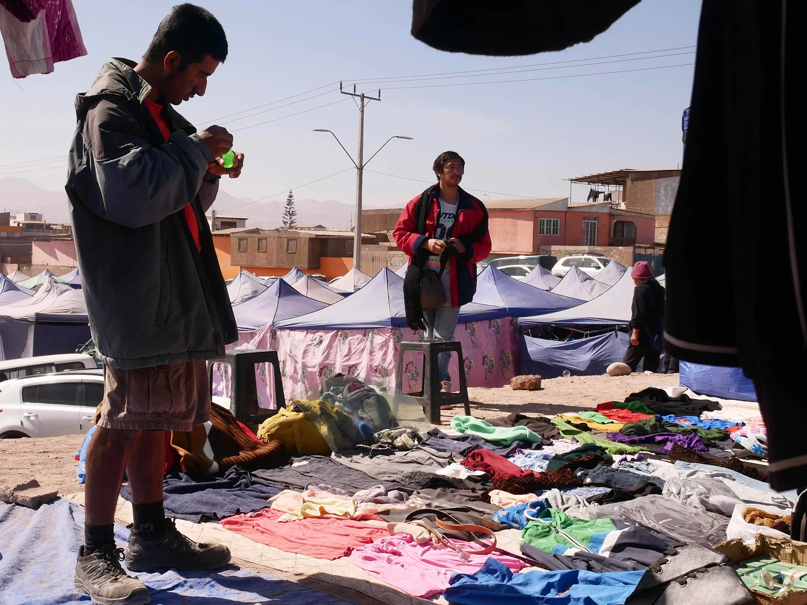 Layne brought a new pocket camera back from the US, a Panasonic ZS99 with a long lens and a flip screen and she was ready to see what she could see so I stole her pictures to add to mine here. When we travel Layne is totally brazen asking shopkeepers for a photo but at the market she was busy just looking and snapping. Below I caught Rueben tasting the Pacific breeze and admiring the view of Iquique below.