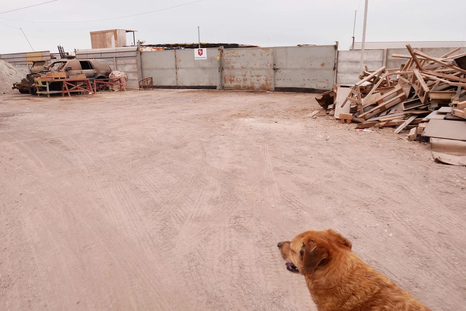 It happened just after I took this picture as we stood outside the gate. I grabbed a 4 x4 from the pile on the right and whacked the fig as she stood over Rusty worrying his fur. She ran and I grabbed Rusty and got him inside the gate.