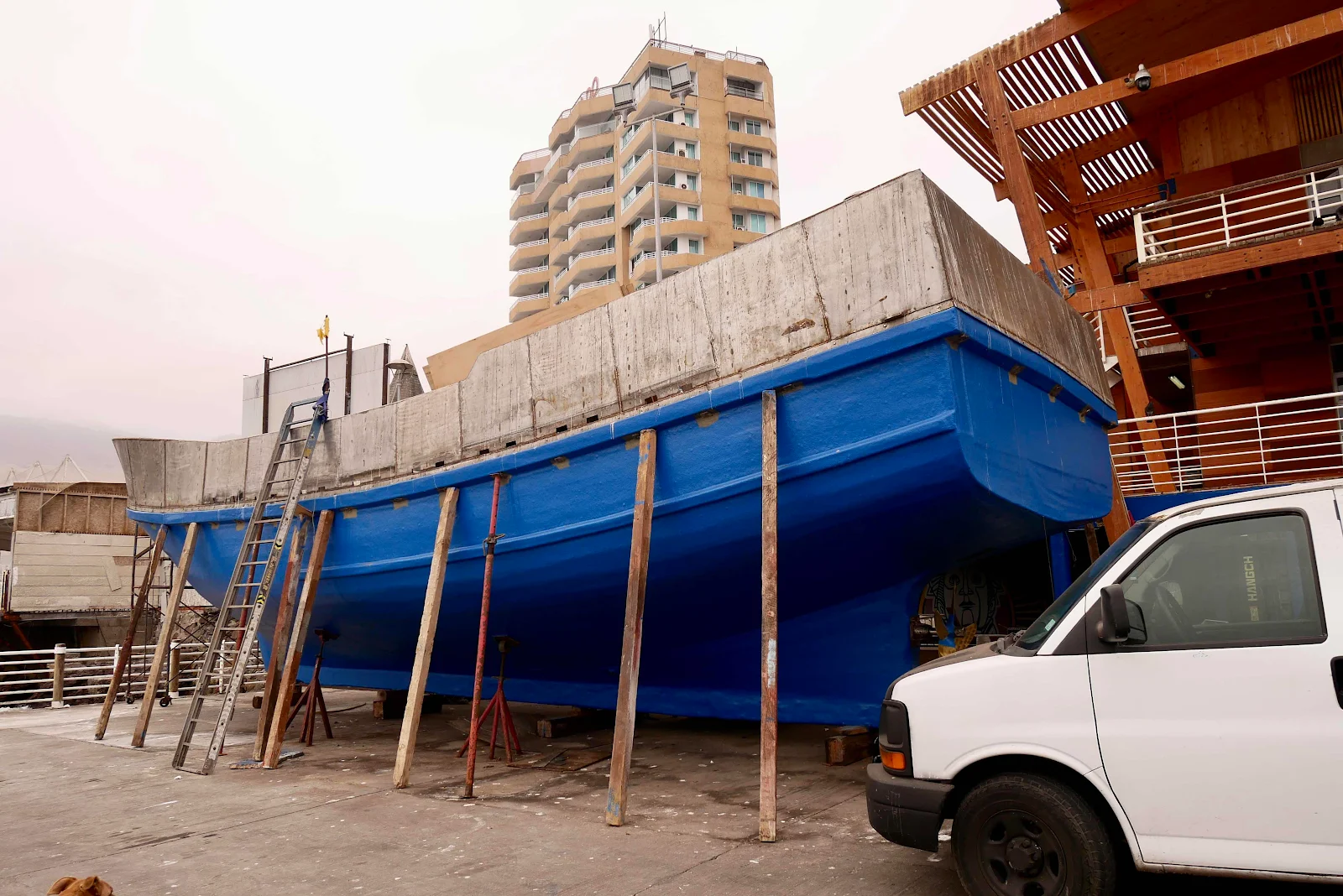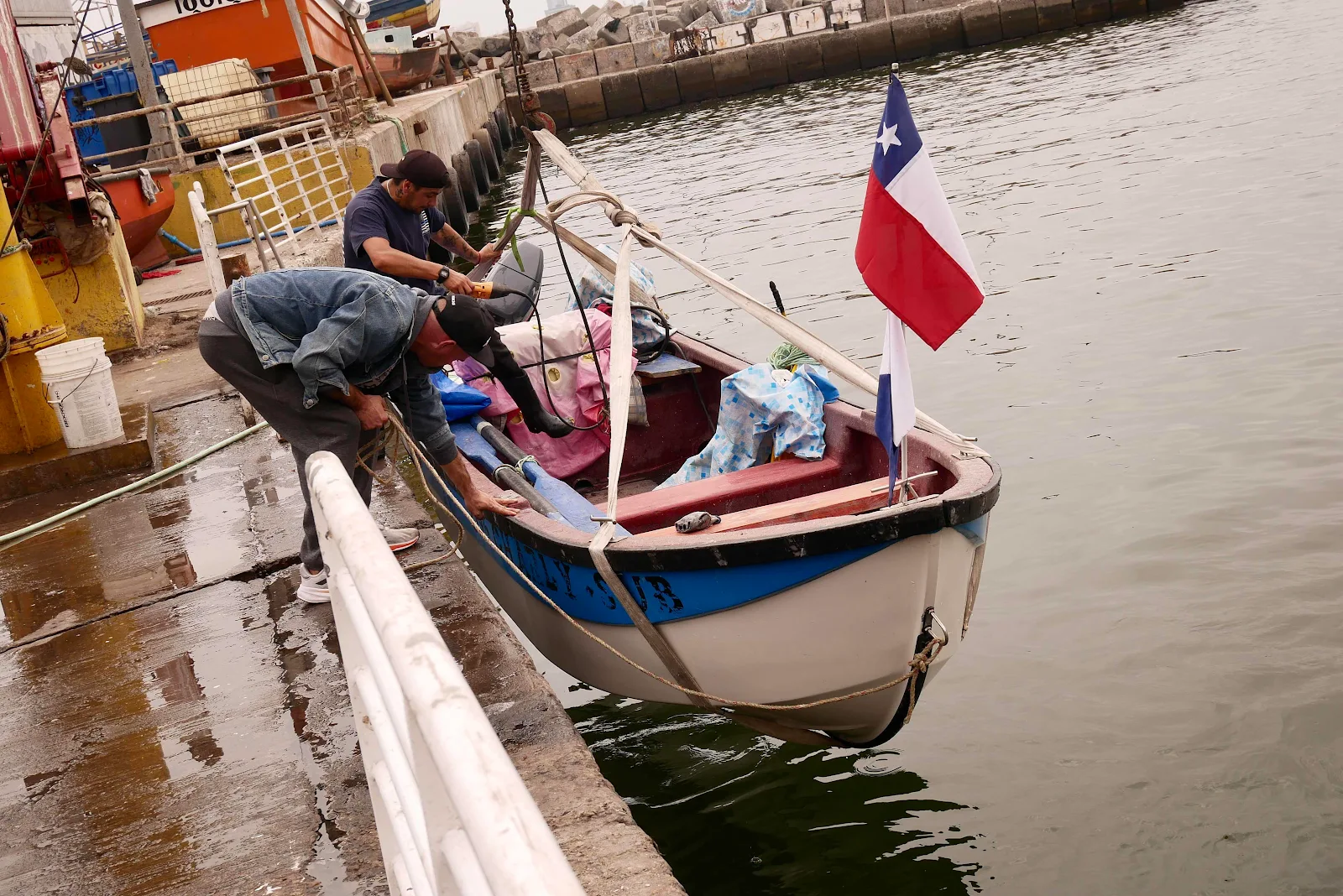 There is no marina or jetty in Iquique but they have haul out facilities for fishing boats and though there was a swell crashing on the beach at the city front the mooring field was surprisingly flat.