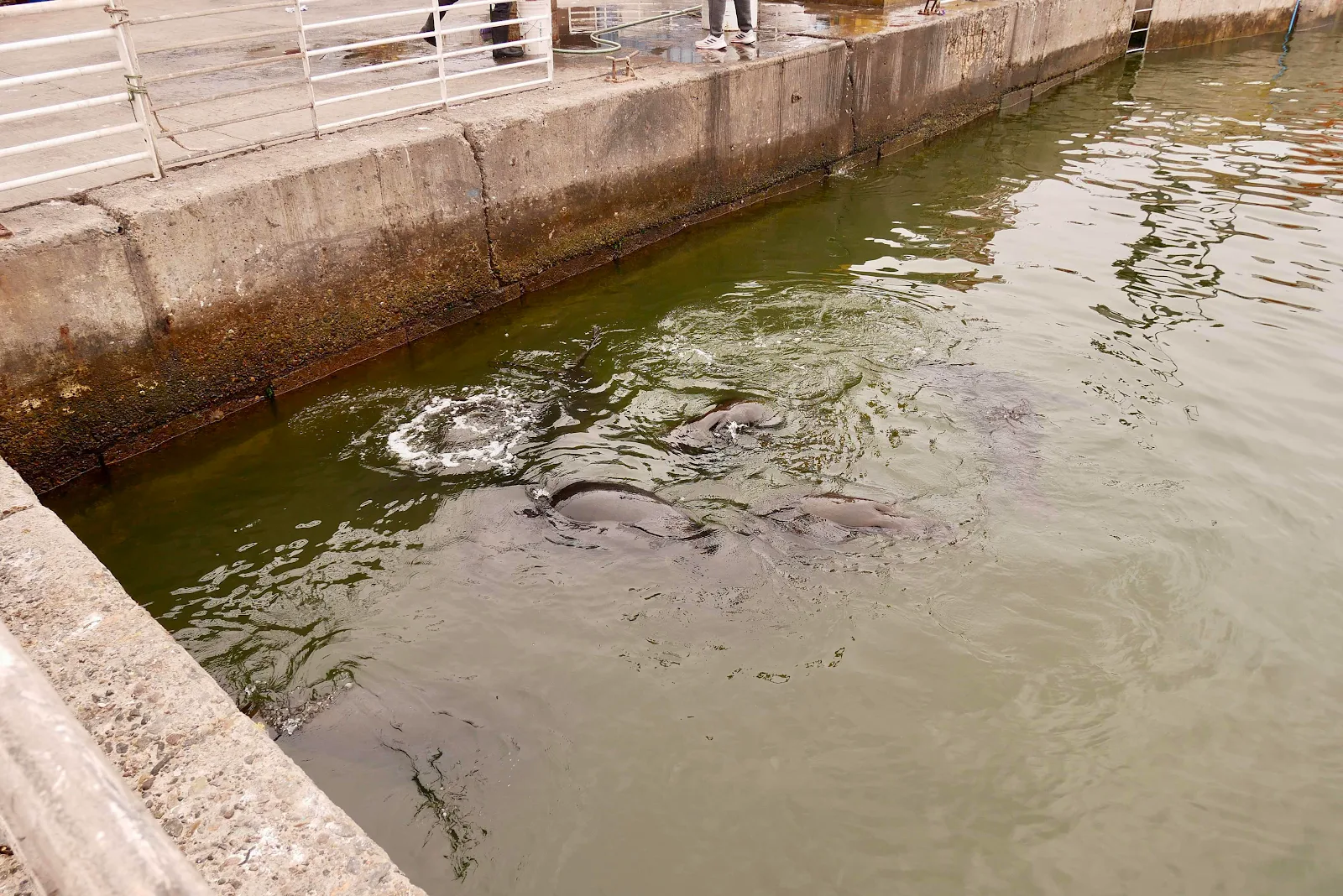 Fishermen feed them scraps so they’ve lost their fear of humans but like it or not there they are so we got our cameras out.