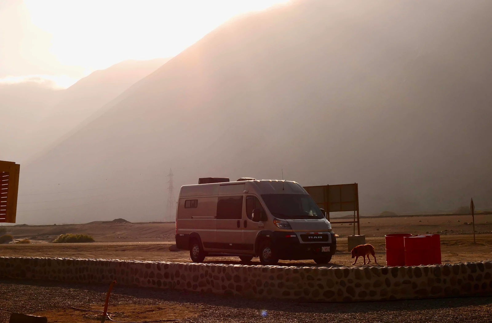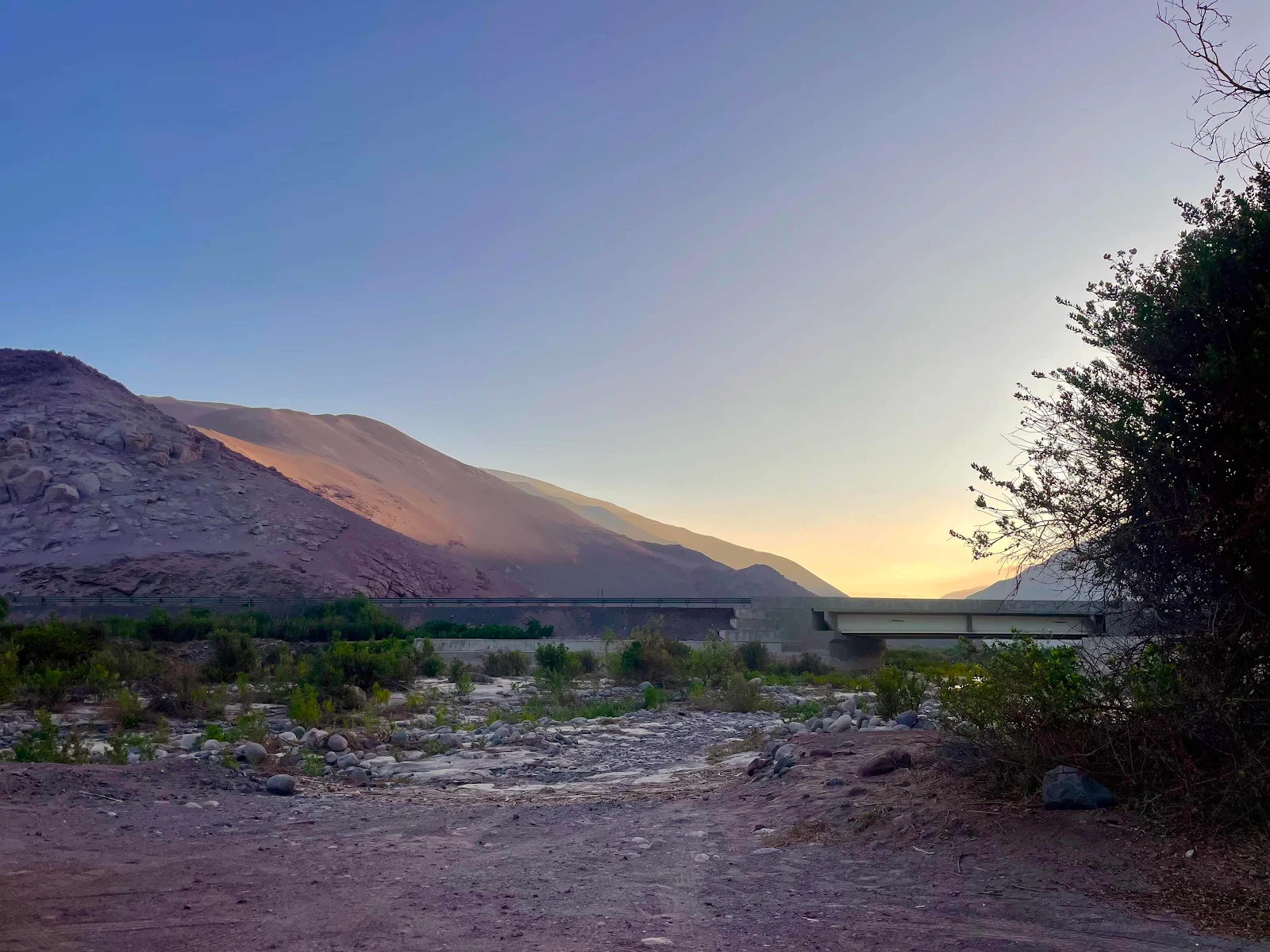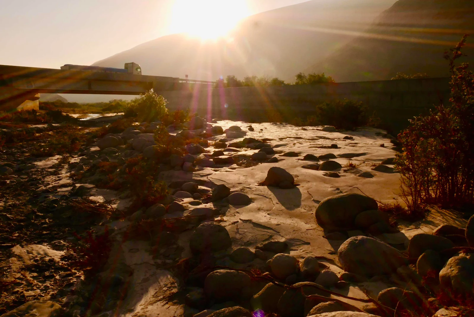 iOverlander found us our spot alongside the highway where a trickle of water runs down to the sea.