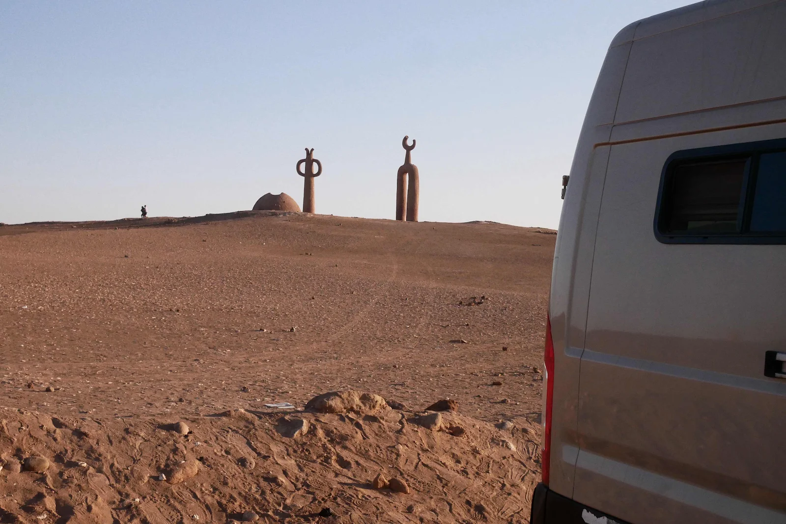 We spent Friday evening moving from one spot to another. We were parked in the lot at the tourist attraction statues in the desert watching TV and having dinner. Over Layne’s shoulder I saw a car crawling up the road and I mean slower than walking pace. Then it stopped and the lights went out. I locked our doors and turned off the cabin lights and kept glancing outside. We were alone in the desert except for the mystery car.
