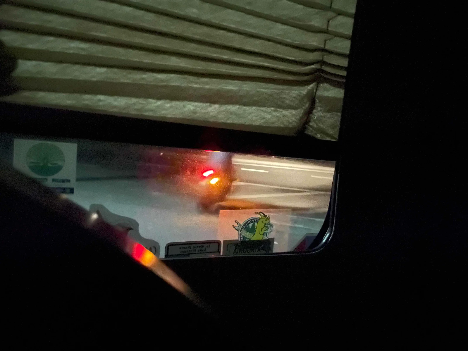 It was pitch black and 8:20 pm and we felt very exposed. We weren’t sure what to fear exactly but the occupants of that car knew precisely where we were if they cared. We bugged out.