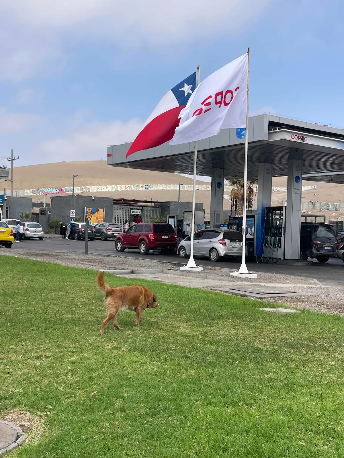 Seeing as how we had to drive through town to get back to driving south we stopped at the Copec gas station for a well earned break from a tough start to the day!
