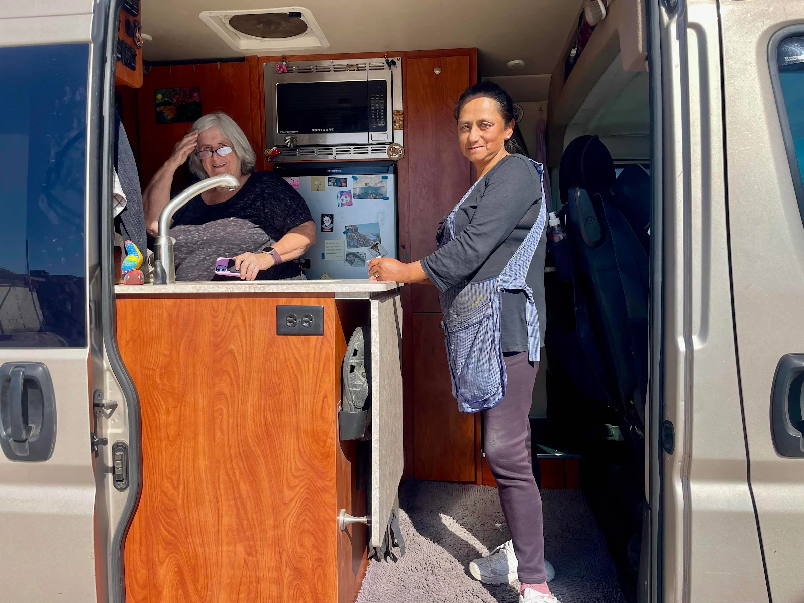 We never got her name but she was fascinated by our story so she and her daughter got the nickel tour. She’s Bolivian and is going home next month to vote as she like everyone in that unfortunate country wants change. She wants a motor home now too.