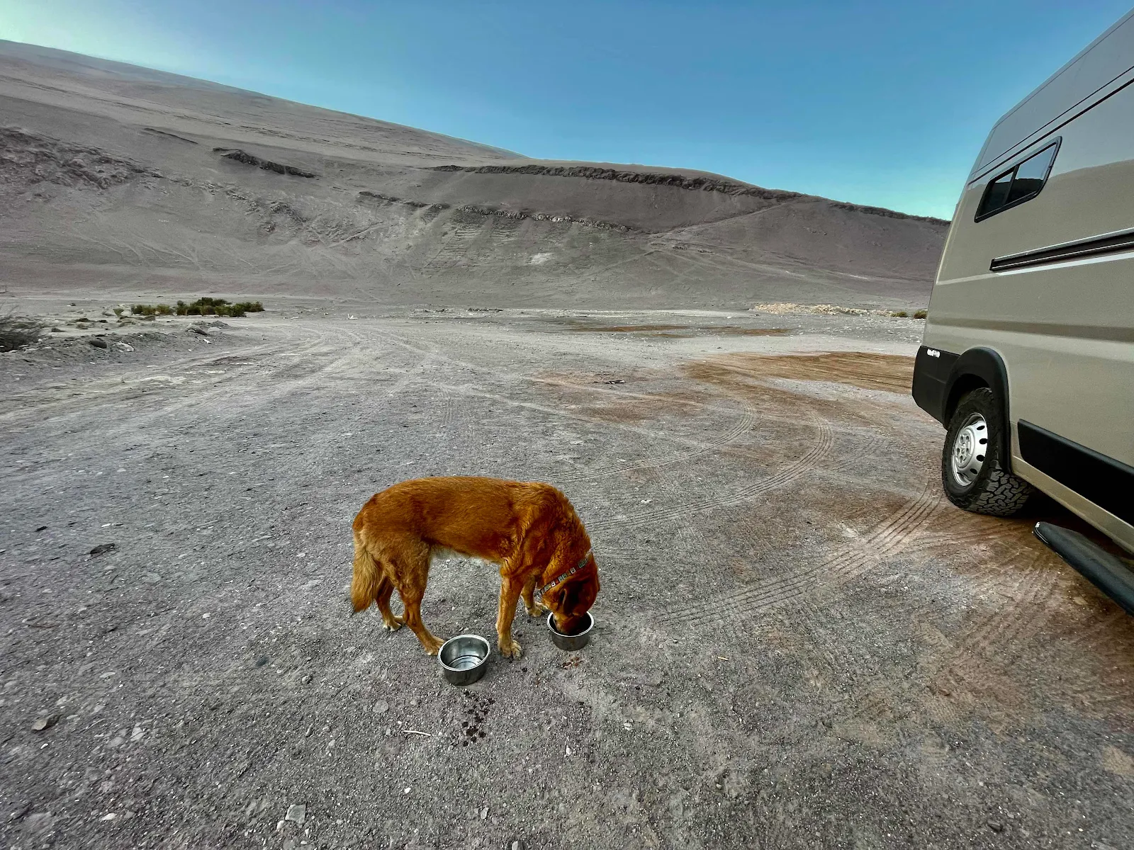He stopped half way around and leaned against my leg and licked my face. The desert made him happy.