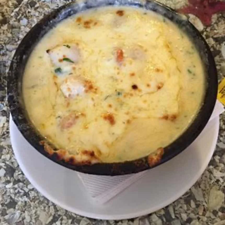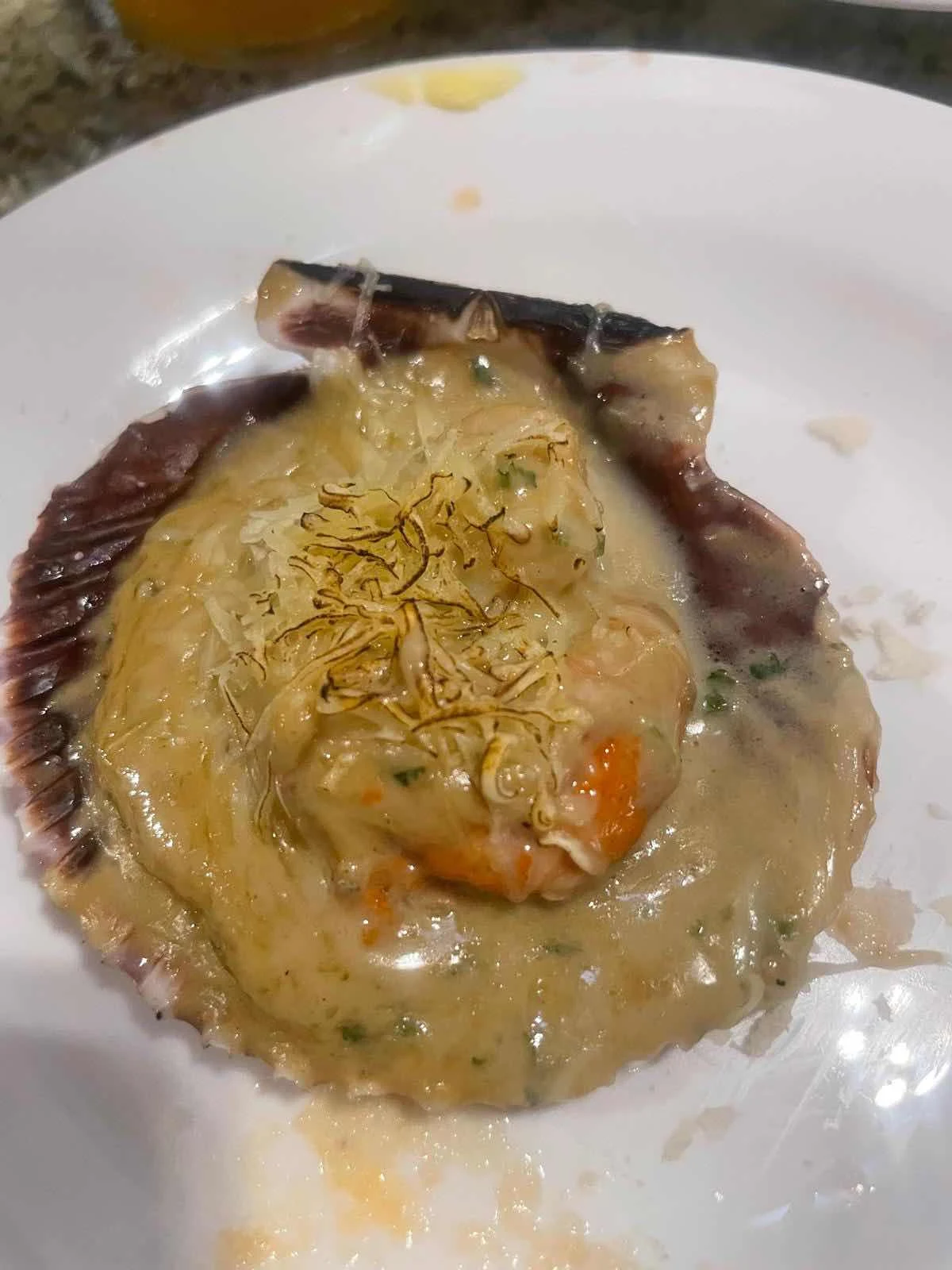 Clams covered in cheese sauce. I know in the US fish and cheese don’t go but hereabouts they make this combination all the time.