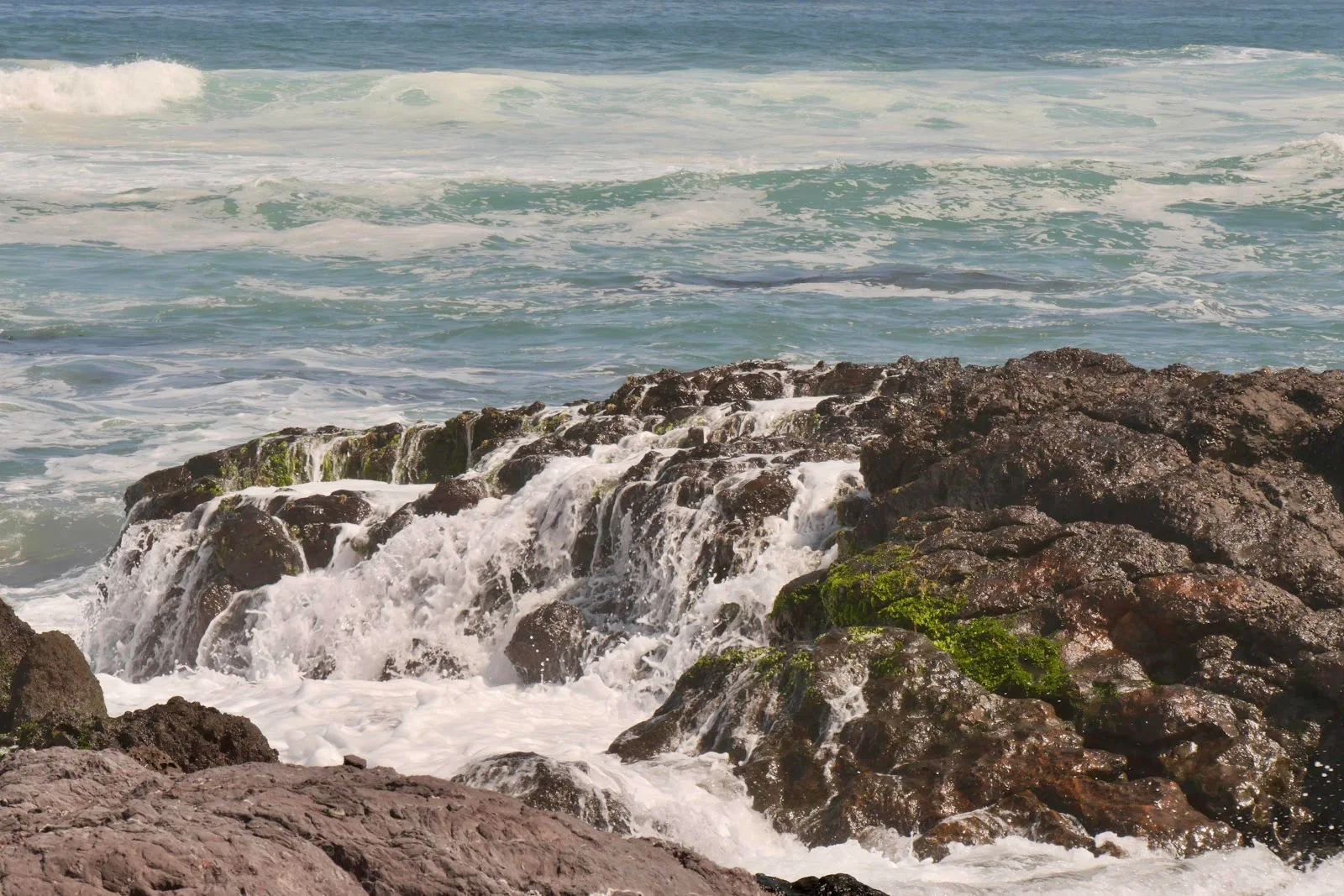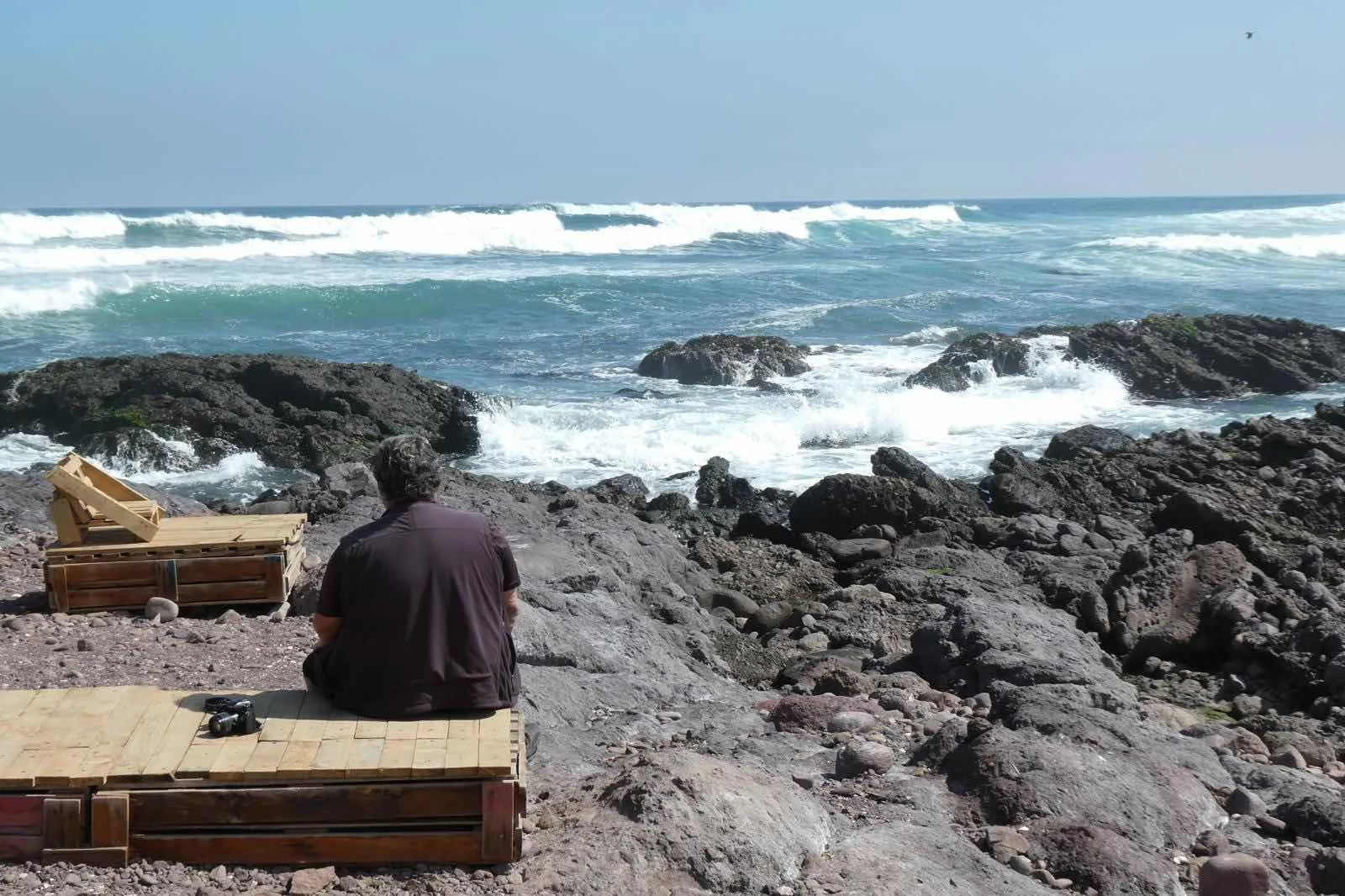I’m sitting on a beach in my van watching the tide come in and the frothy white spume is pouring over the black rocks along the shore and rolling back with a continuous roar of thunder. Yes I still like driving the mountains and admiring the views but this is where I like to be, within sight of tidal waters. It took me driving the Andes to get this clear in my head.