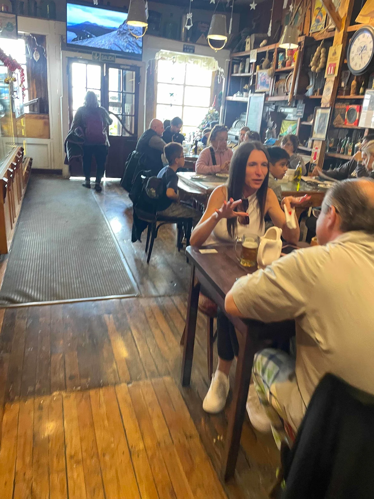 We landed for 45 minutes on an island where everyone rushed off to take a short walk to an overlook and Layne and I had breakfast, a toasted cheese sandwich -and maté, (“mah-tay”). The matécane in a tea bsg arrangement and we did add some sugar but not every Argentine does.