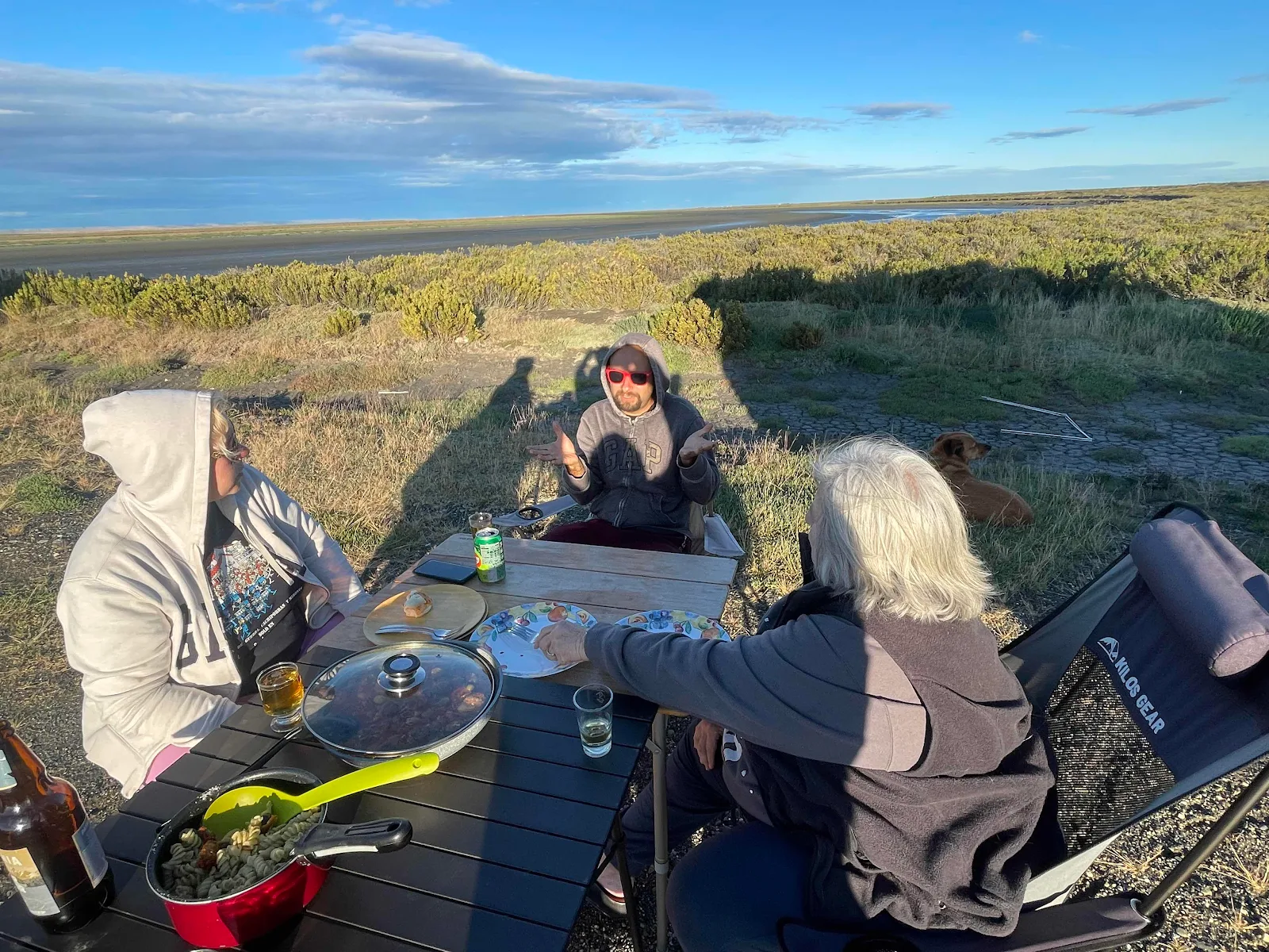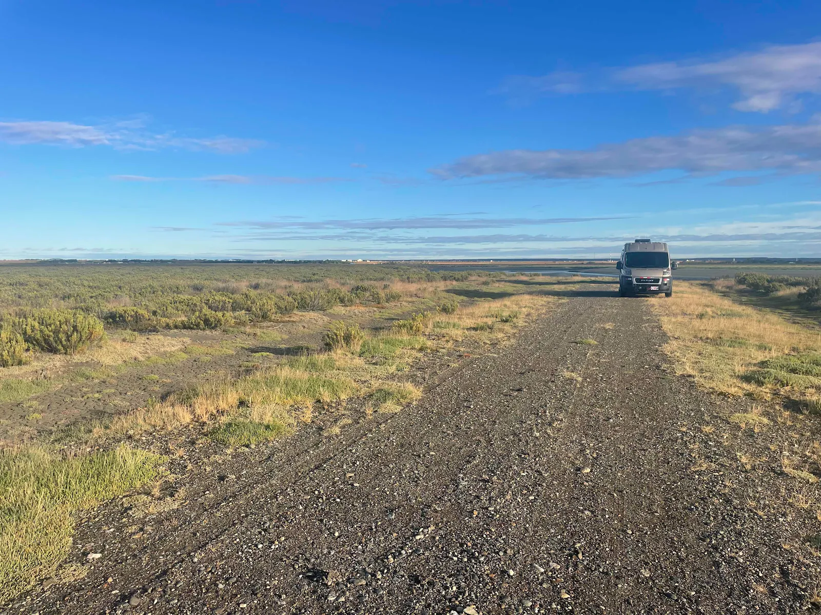 We got to Rio Gallegos and went to the modern clean gas station to get hot showers ($5 each) and to load back up with fruit and groceries after getting our fruit confiscated by the Chilean customs. Then we went wild camping with our friends Julia and Konstantin, Russian immigrants who live in Seattle.