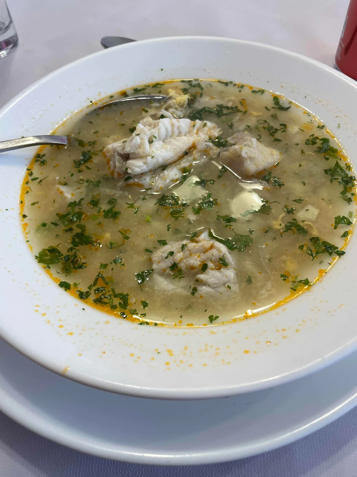Bean stew full of smoke flavor from the meat. I liked it more than Layne did. She felt like we were getting two soup courses.