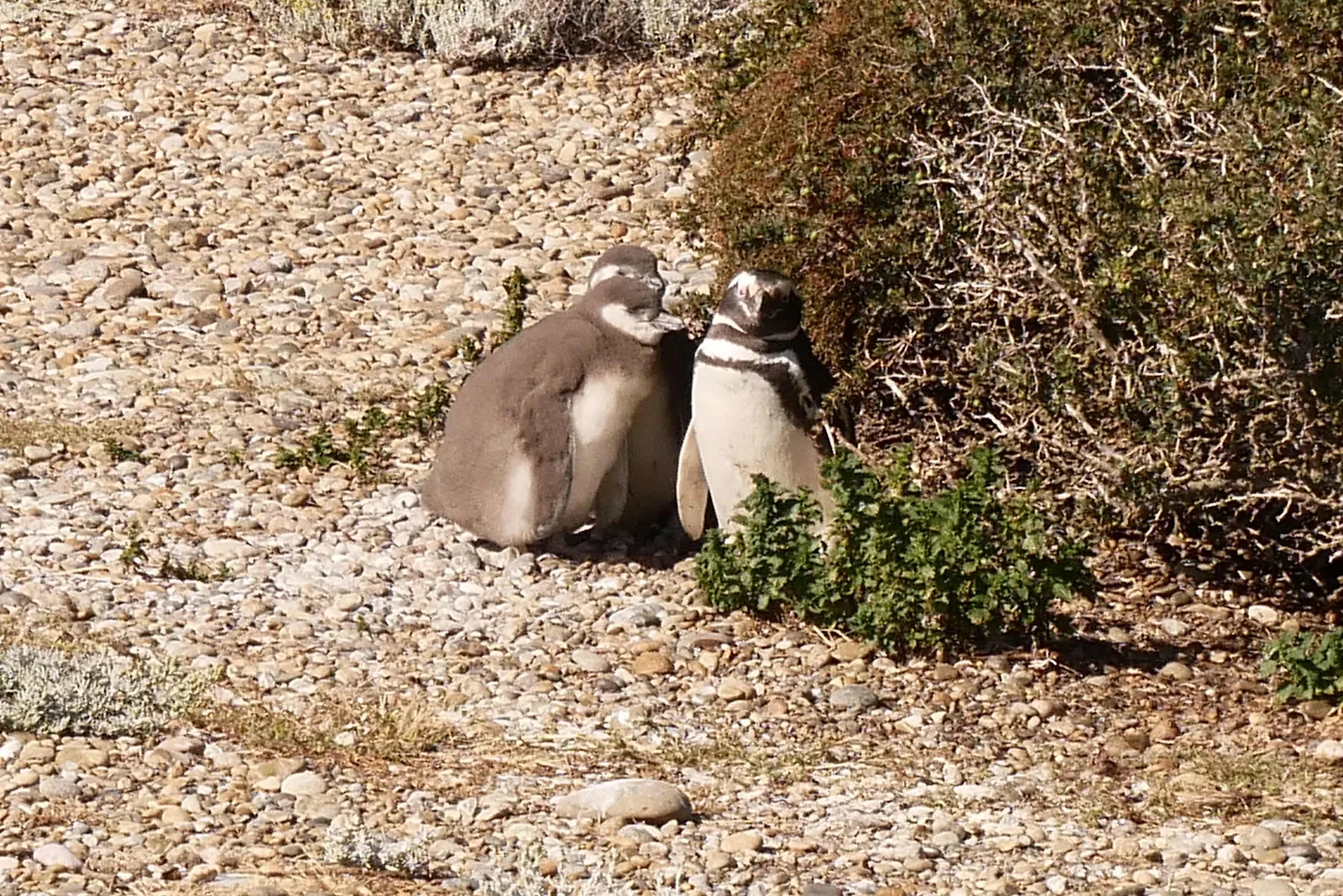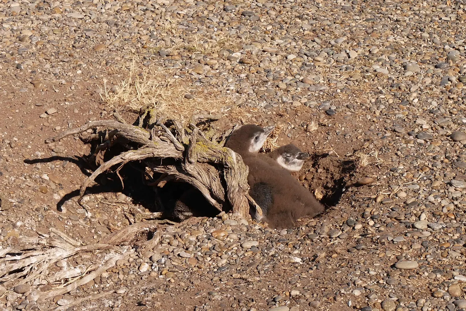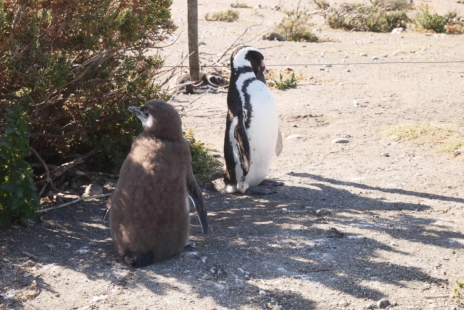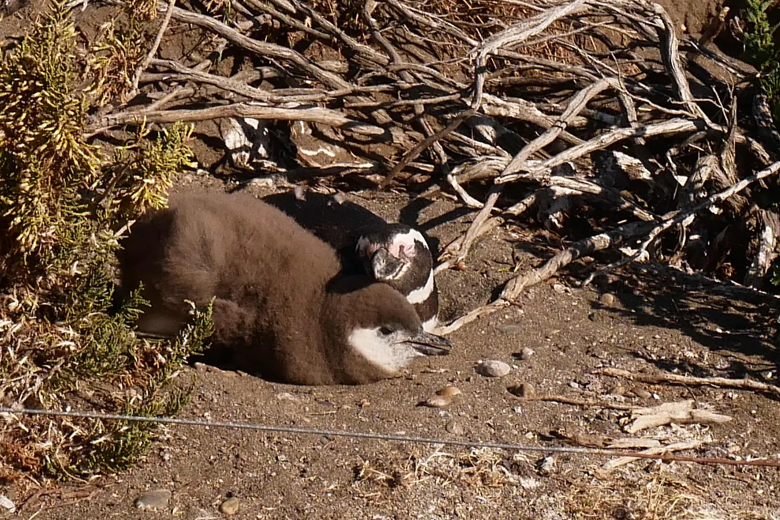 Magellanic penguins with fur on them are juveniles. Until they lose the fuzz they can’t swim so their parents, who mate for life, have to feed them.