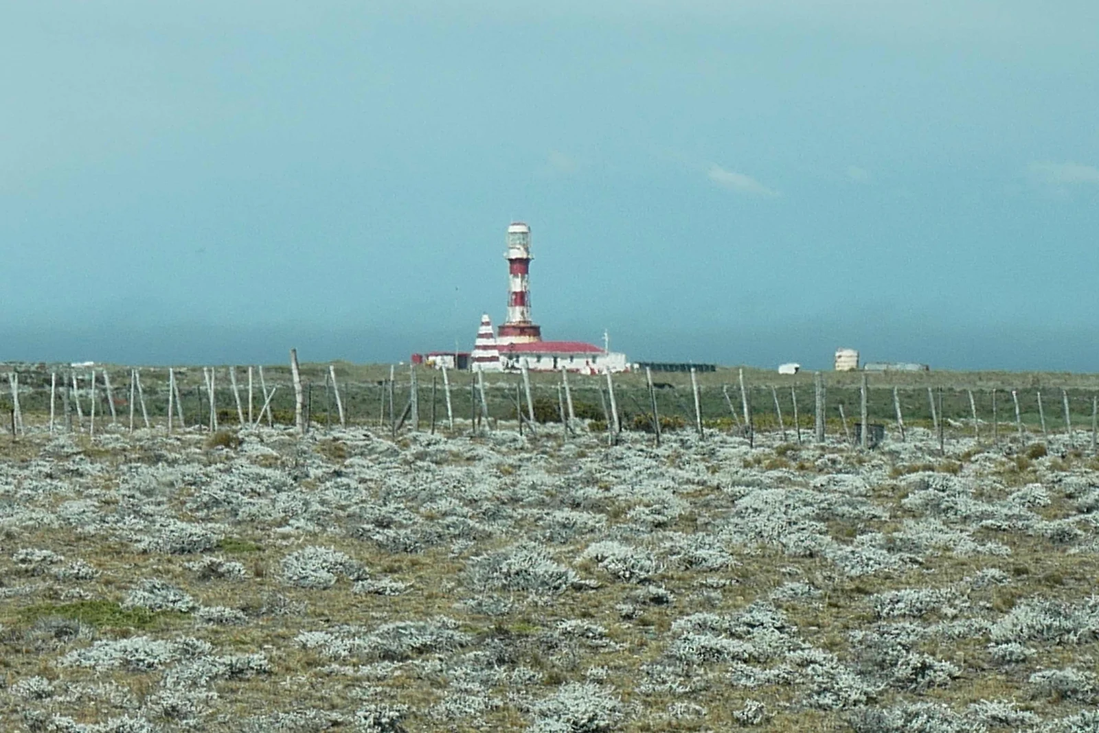 The blue and white Argentine lighthouse. There is a red and white one on the Chilean side of the border a few miles away. Chile owns both sides of the entrance to the Straits of Magellan.
