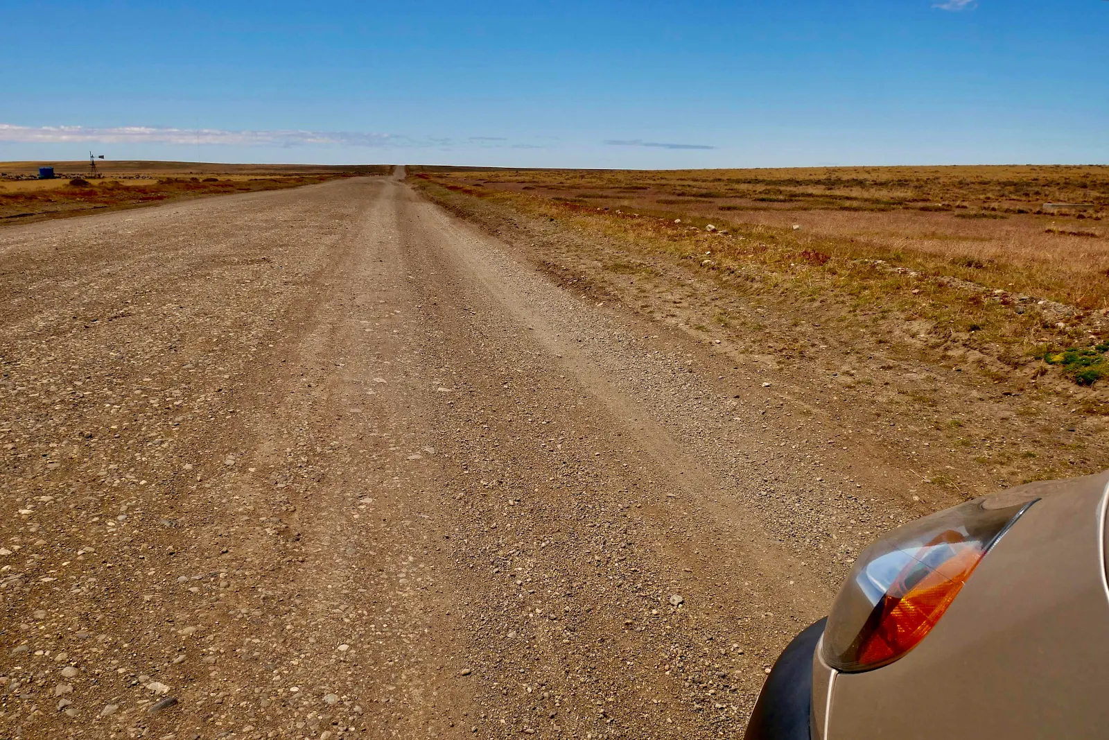 It looks isolated and it is but there is a surprising amount of traffic, tanker trucks from the gas fields and pickups and vans with penguin tourists and private cars. And us.