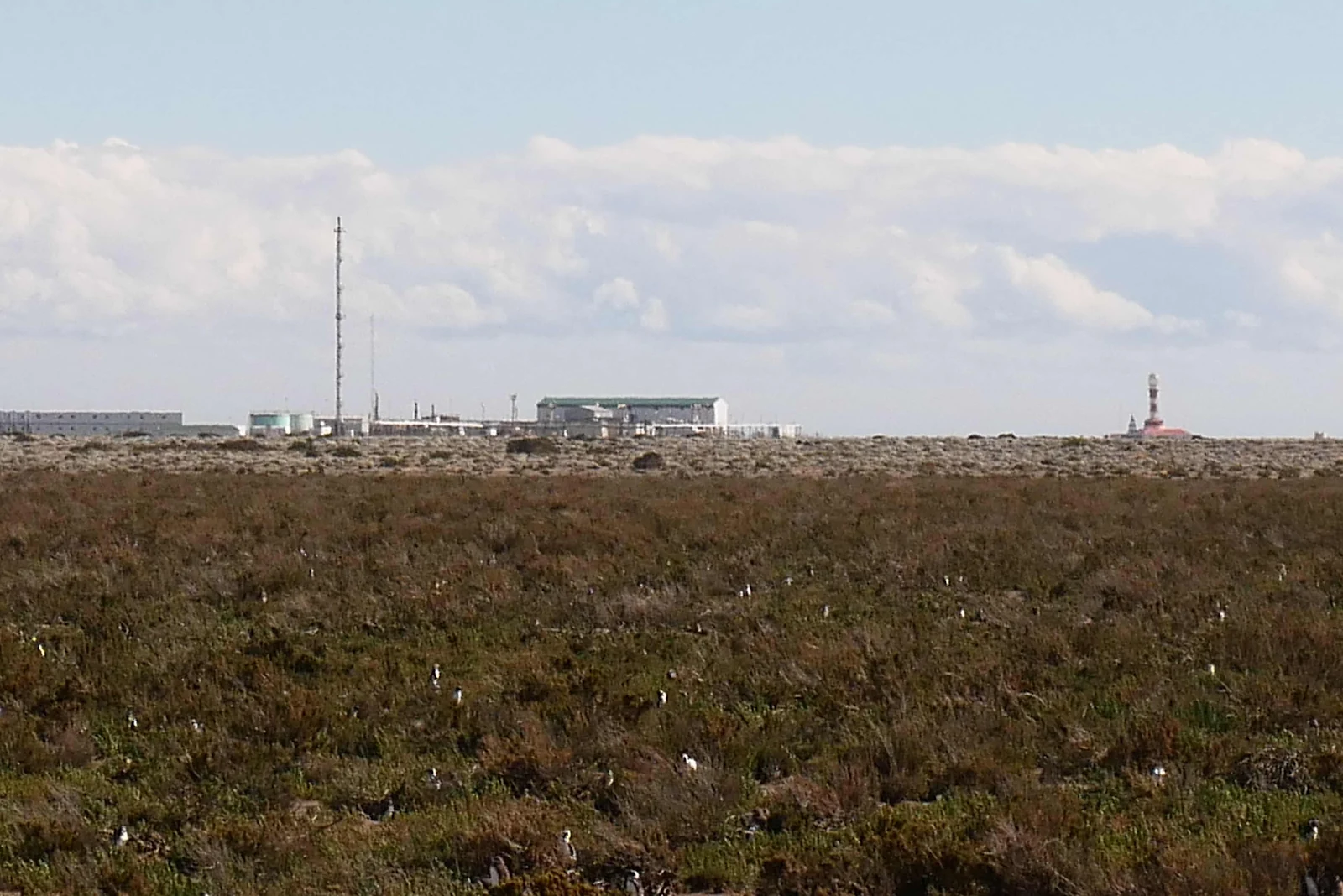 Behind the double border fence the Chilean lighthouse sits in splendid isolation.