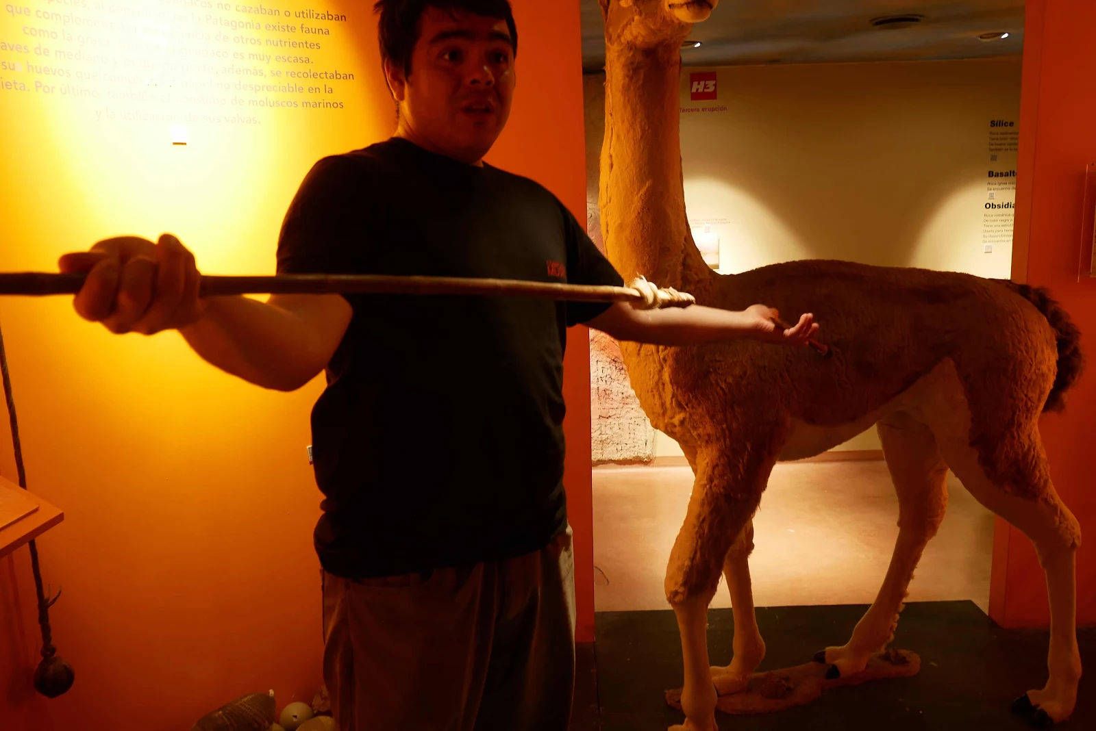 They had a spear made of bamboo cane with a removable tip so the haft would fall away had the guanaco would be stuck only by the tip. To increase the force they used a launcher held in the hand to propel the spear further and harder.