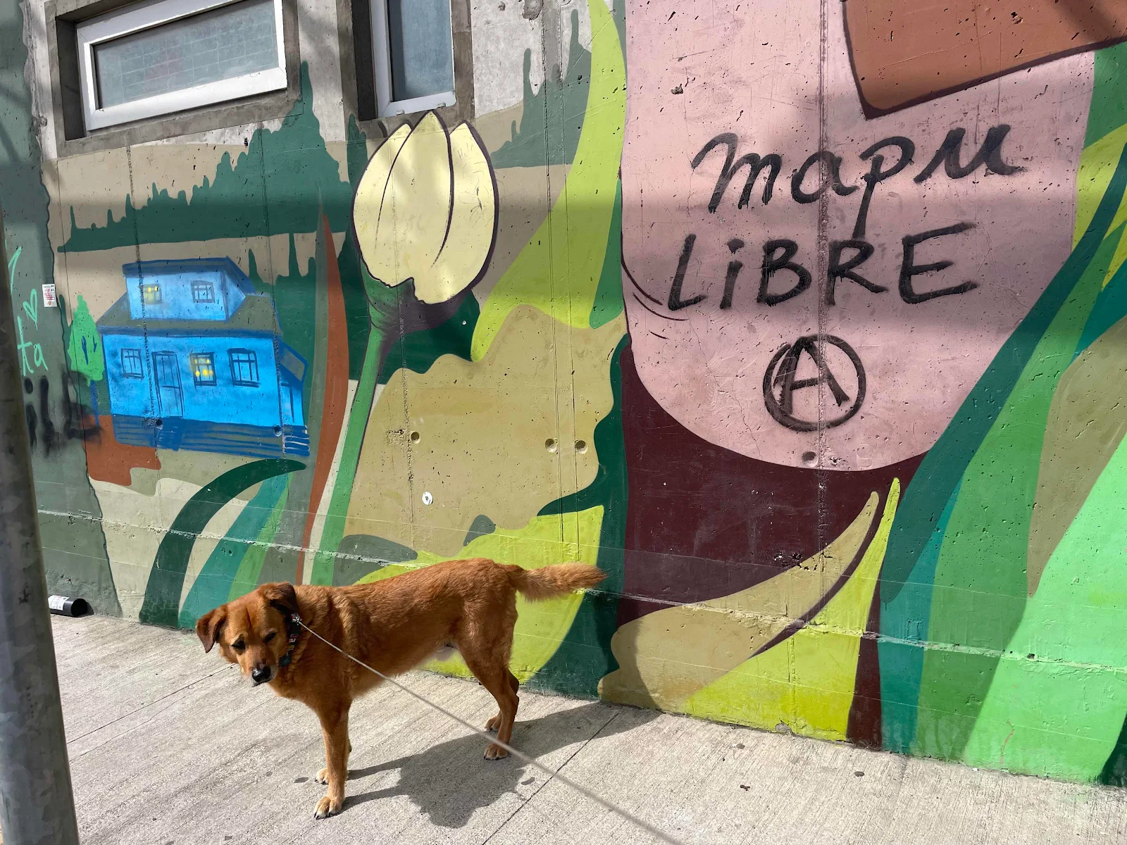 Rusty got a town walk in Castro the Island’s capital. Layne went into the fruit and vegetable market, the Féria Campesina, and I followed my dog around the streets, those streets with fewer local dog gangs hanging out. Mapu Libre refers to freedom for the indigenous locals, those that are left.