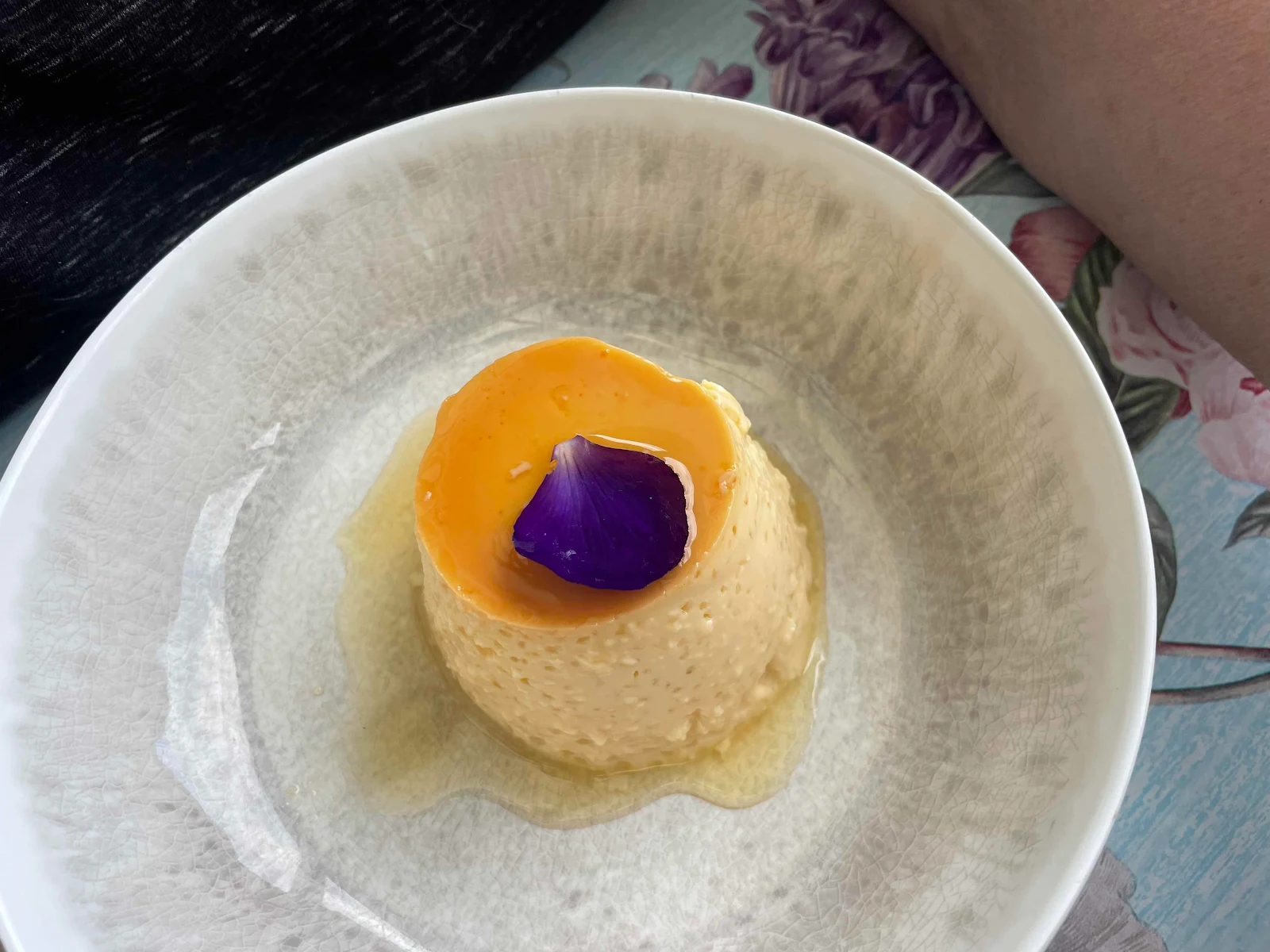 Pudding dog me was a slice of chocolate cake drowned in some Pisco (brandy) type liquor.